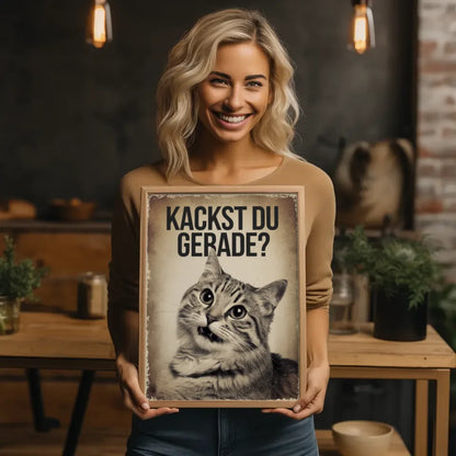 Humorvolles Poster Katze mit Frage Kackst du gerade im Vintage Stil