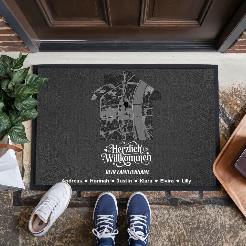 Individuelle Fußmatte für Familien mit Namen Herzlich Willkommen personalisiert