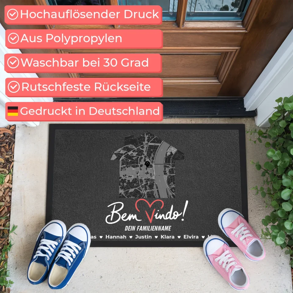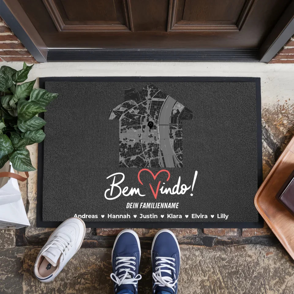 Individuelle Fußmatte für Familien mit Namen Willkommen auf Portugiesisch