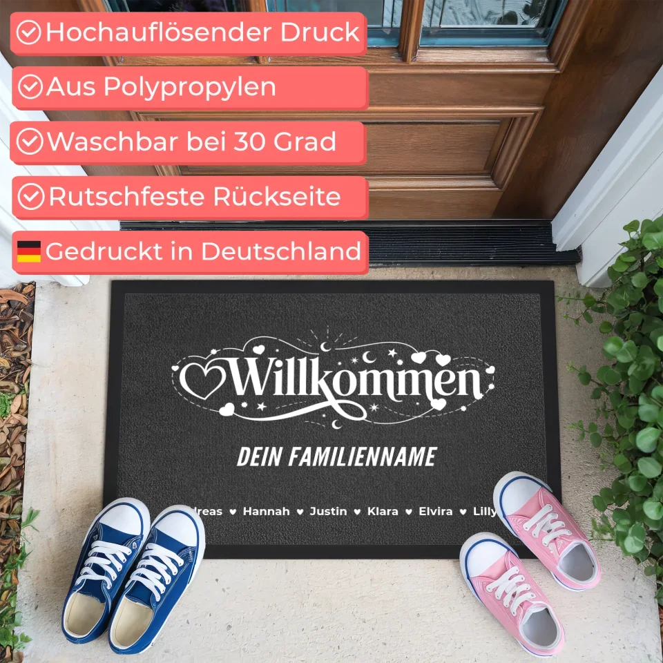 Individuelle Fußmatte für Familien Willkommen personalisiert Mit Namen