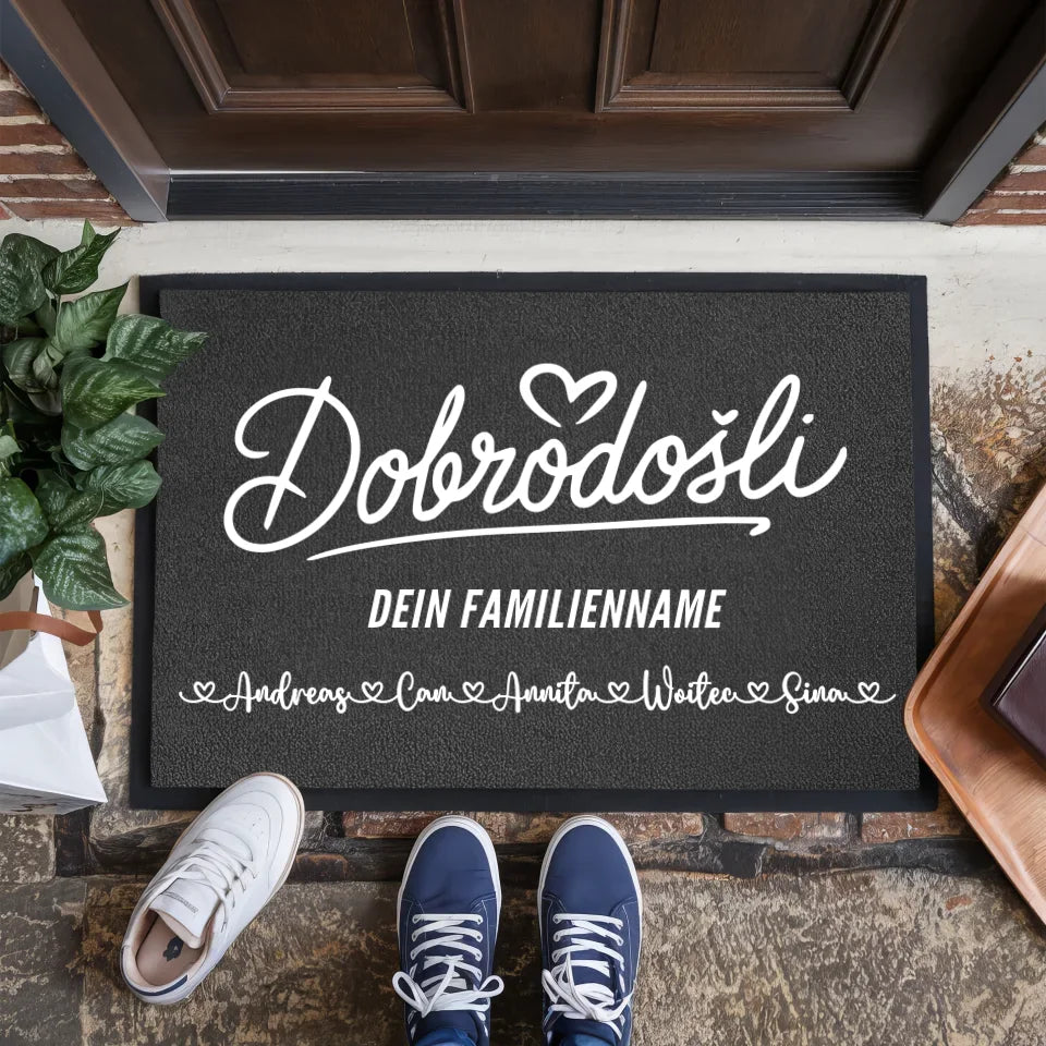 Individuelle Fußmatte mit Namen Familie Willkommen Kroatisch