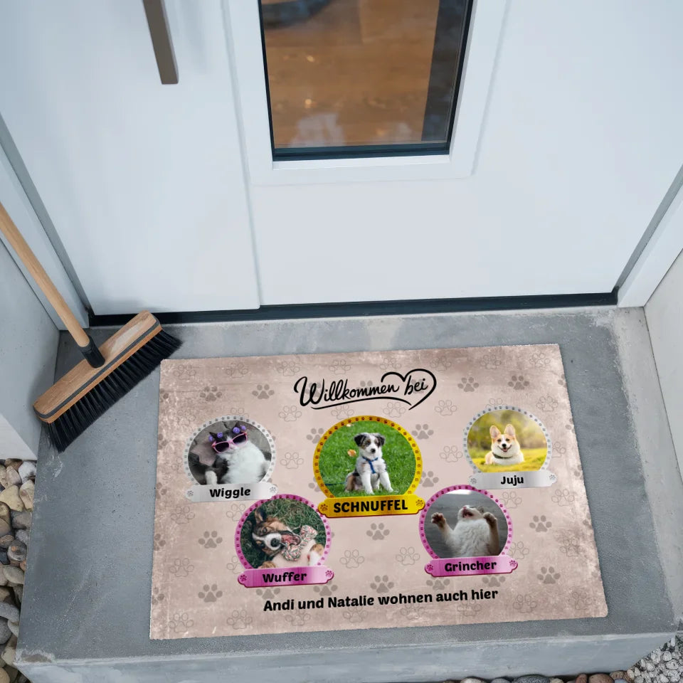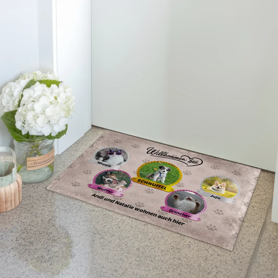 Individuelle Haustier Fußmatte Willkommen Bei 5 Hunden mit Namen gestalten