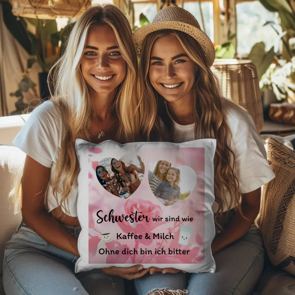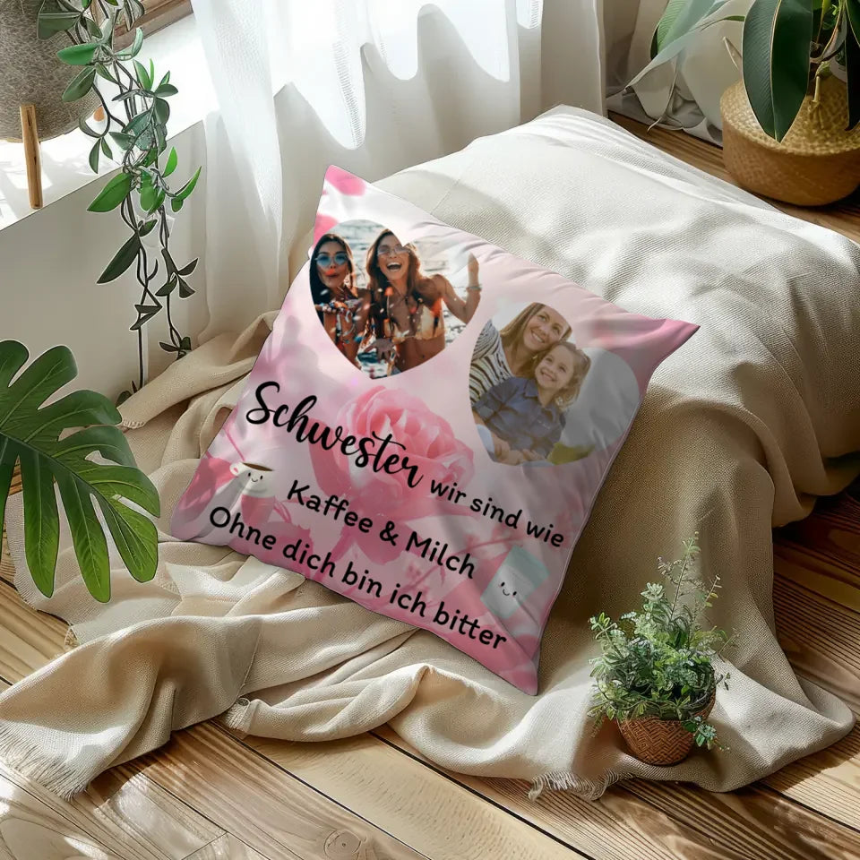 Individuelles Kissen Schwester Zum Geburtstag mit 2 Fotos