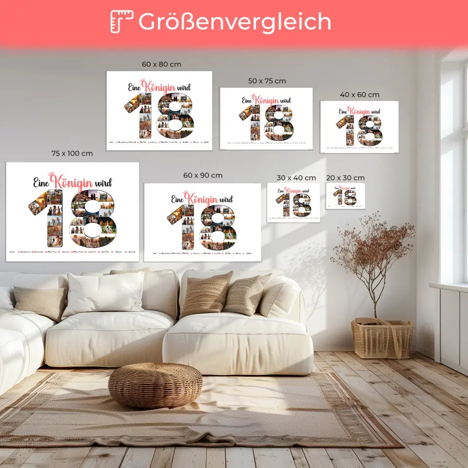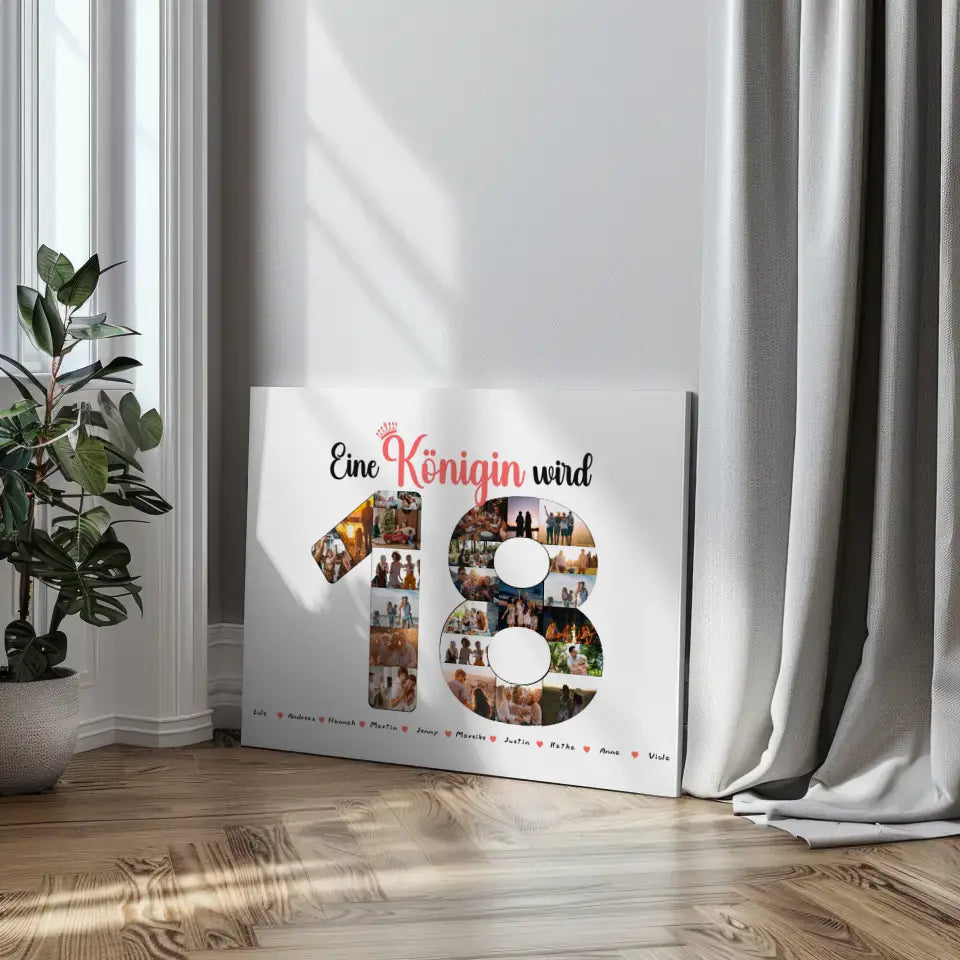 Individuelles Leinwand Königin wird 18 Geburtstag mit Fotos in Zahlen