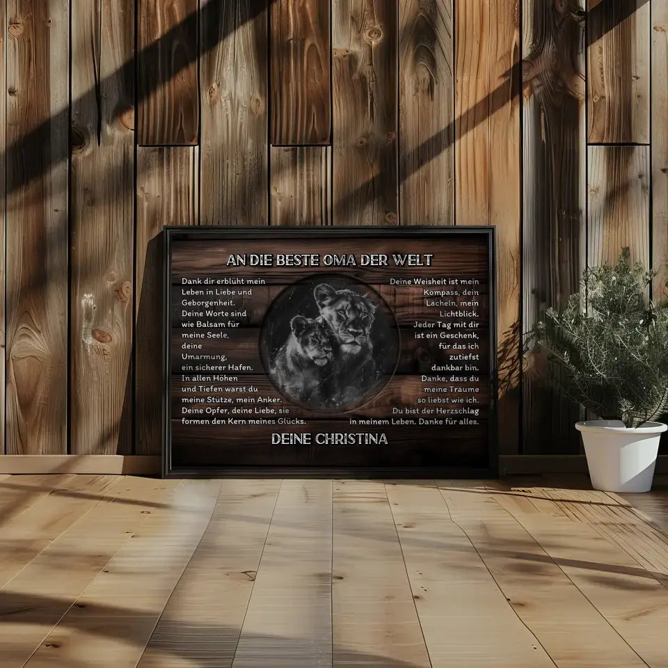 Du möchtest etwas einzigartiges verschenken? Dann ist Unser Individuelles Poster für Oma mit Löwen und Namen ein tolles personalisiertes Geschenk.