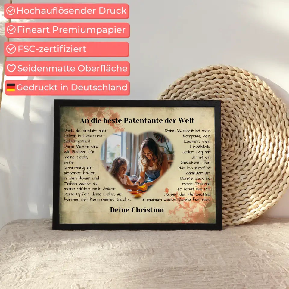 Dieses personalisierte Poster ist perfekt Für alle Patentanten . Also perfekt zum Geburtstag oder auch zu Weihnachten .