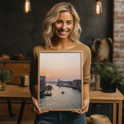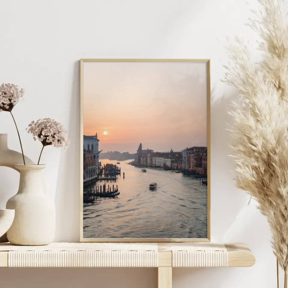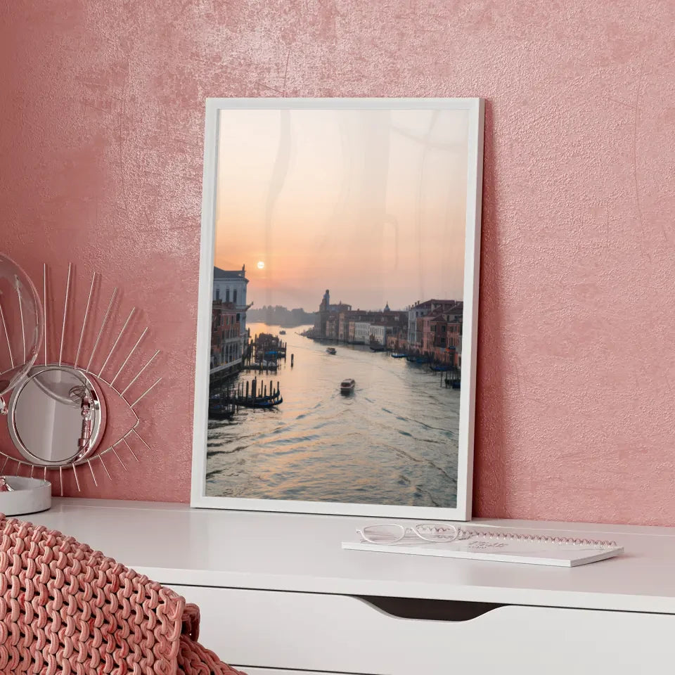 Die einzigartige Perspektive und die lebendigen Farben machen dieses Poster zu einem echten Hingucker in jedem Raum. Ob im Wohnzimmer, Schlafzimmer oder Büro – das Venedig Panoramafoto Poster zur Golden Hour verleiht jeder Umgebung ein Gefühl von Eleganz und Stil. Lassen Sie sich von der Schönheit Italiens inspirieren und bringen Sie ein Stück Venedig in Ihr Zuhause.