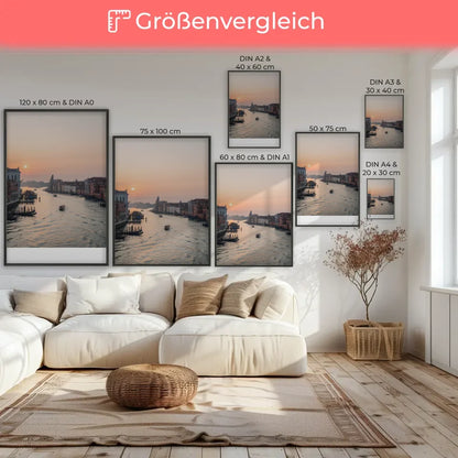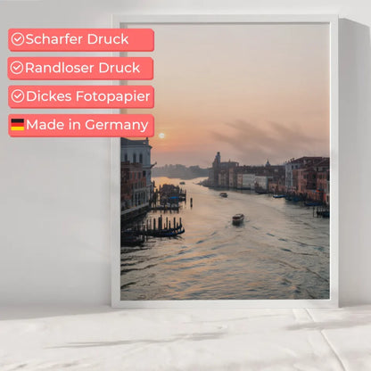 Sichern Sie sich noch heute dieses spektakuläre Venedig Panoramafoto Poster zur Golden Hour und überzeugen Sie sich selbst von der beeindruckenden Wirkung unseres Italien Posters. Ideal auch als Geschenk für Kunstliebhaber oder Venedig-Fans!