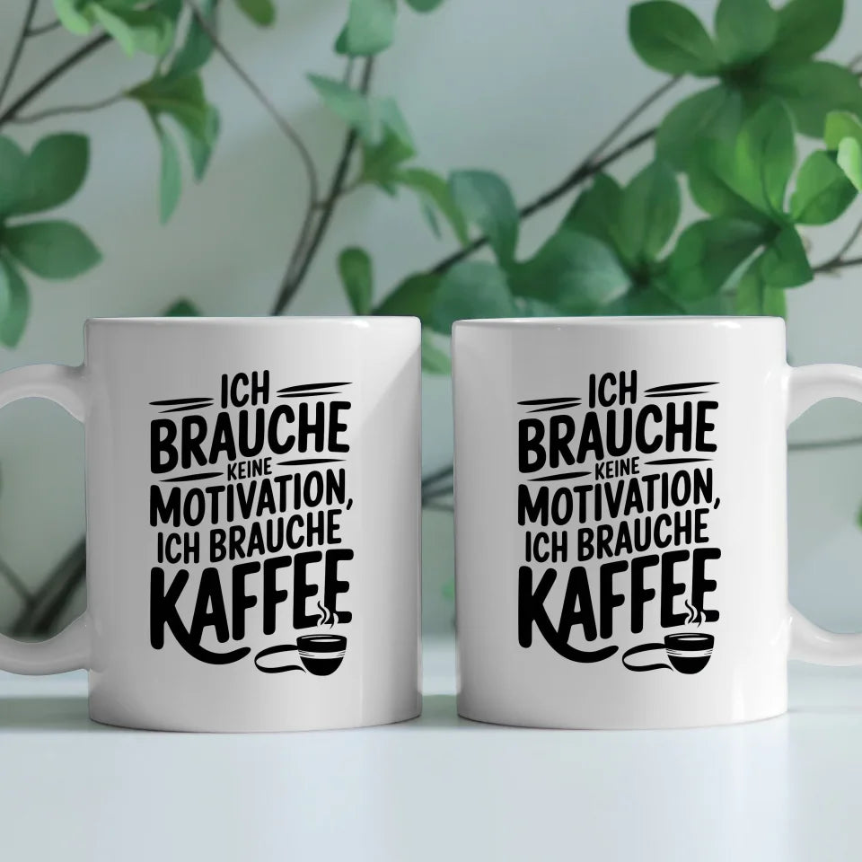 Bestellen Sie noch heute die Kaffee Tasse mit Spruchbild 'Ich brauche keine Motivation, ich brauche Kaffee' und erleben Sie, wie Sie Ihre Kaffeepause mit einem kleinen Stück Kreativität bereichern!