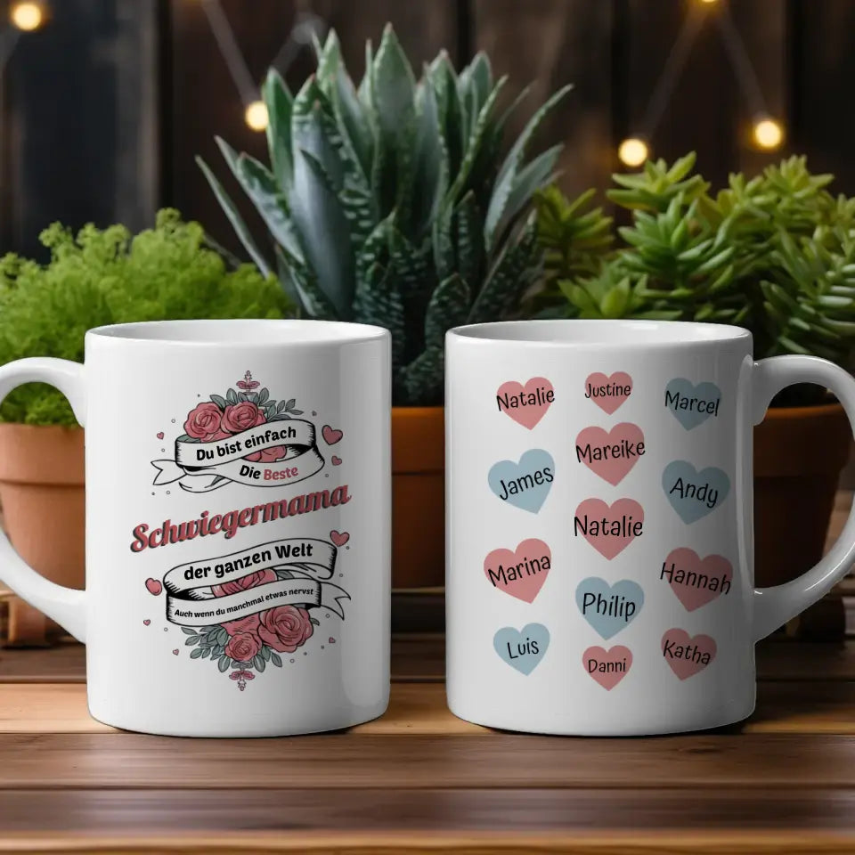 Unsere Kaffetasse Personalisiert Schwiegermama ist die Beste mit 13 Namen
