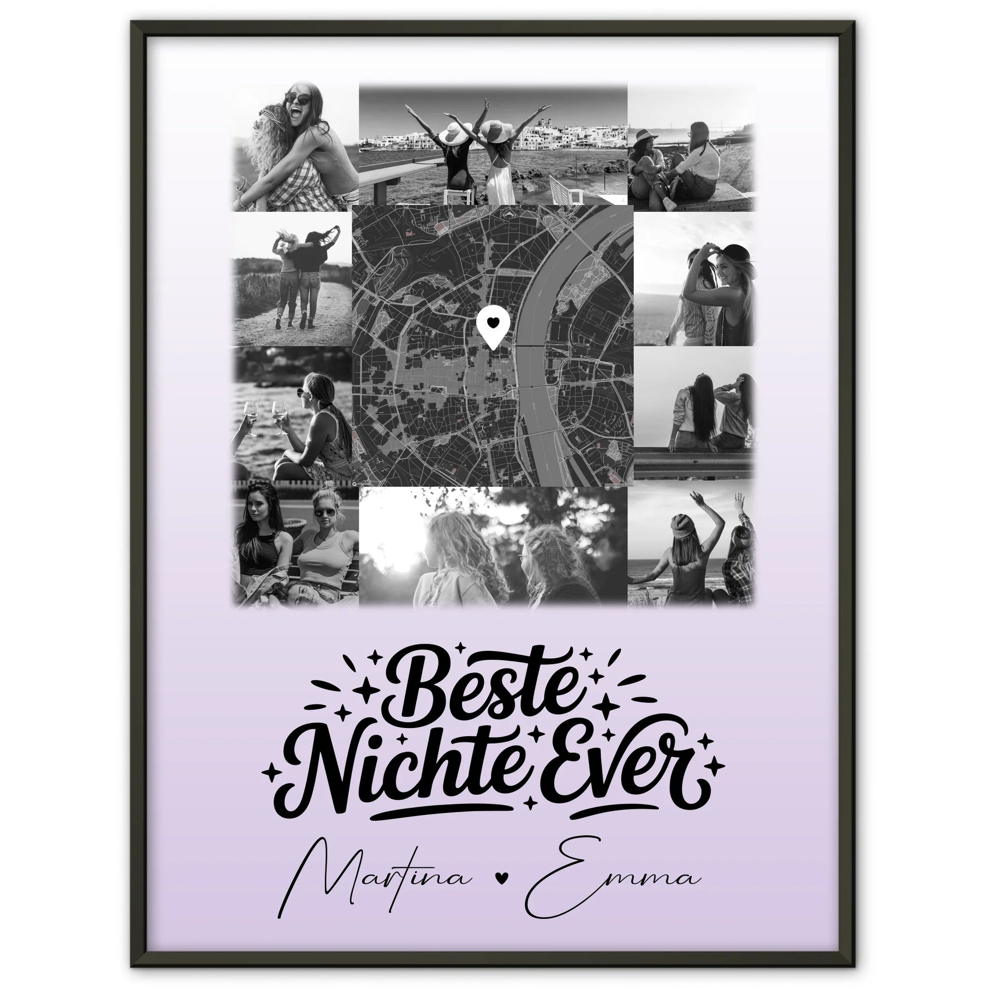 Personalisierte Karten Poster mit 10 Fotos und Karte in der Mitte – Beste Nichte Ever Schwarz-Weiß