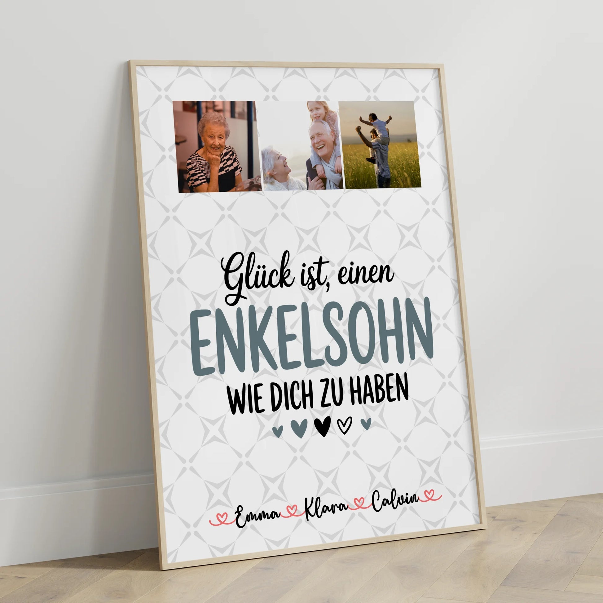 Personalisierte Karten Poster mit Fotocollage für deinen Enkelsohn - Glück ist, einen Enkelsohn wie Dich zu haben