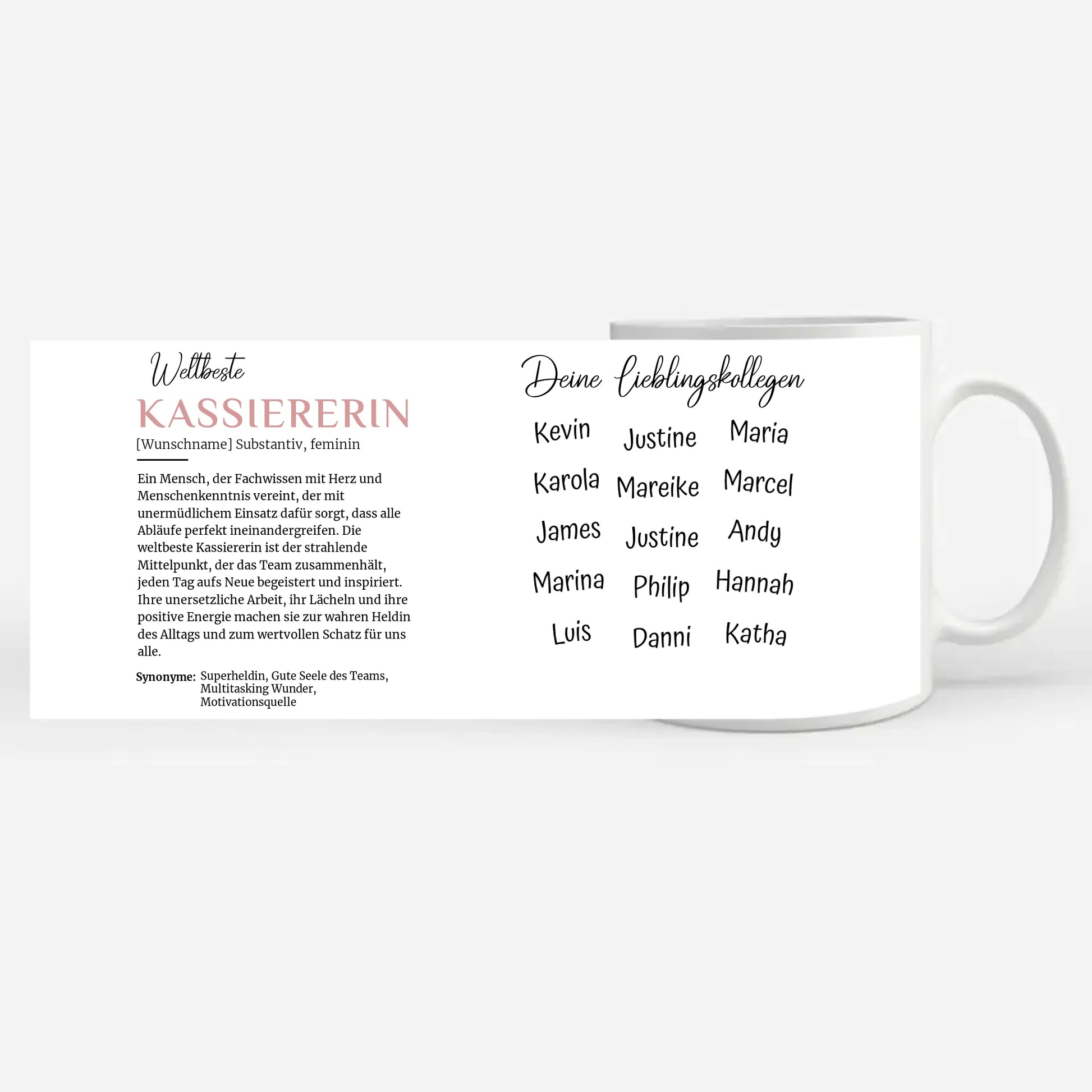 Kassiererin Tasse mit Name Definition Kassiererin Abschiedsgeschenk