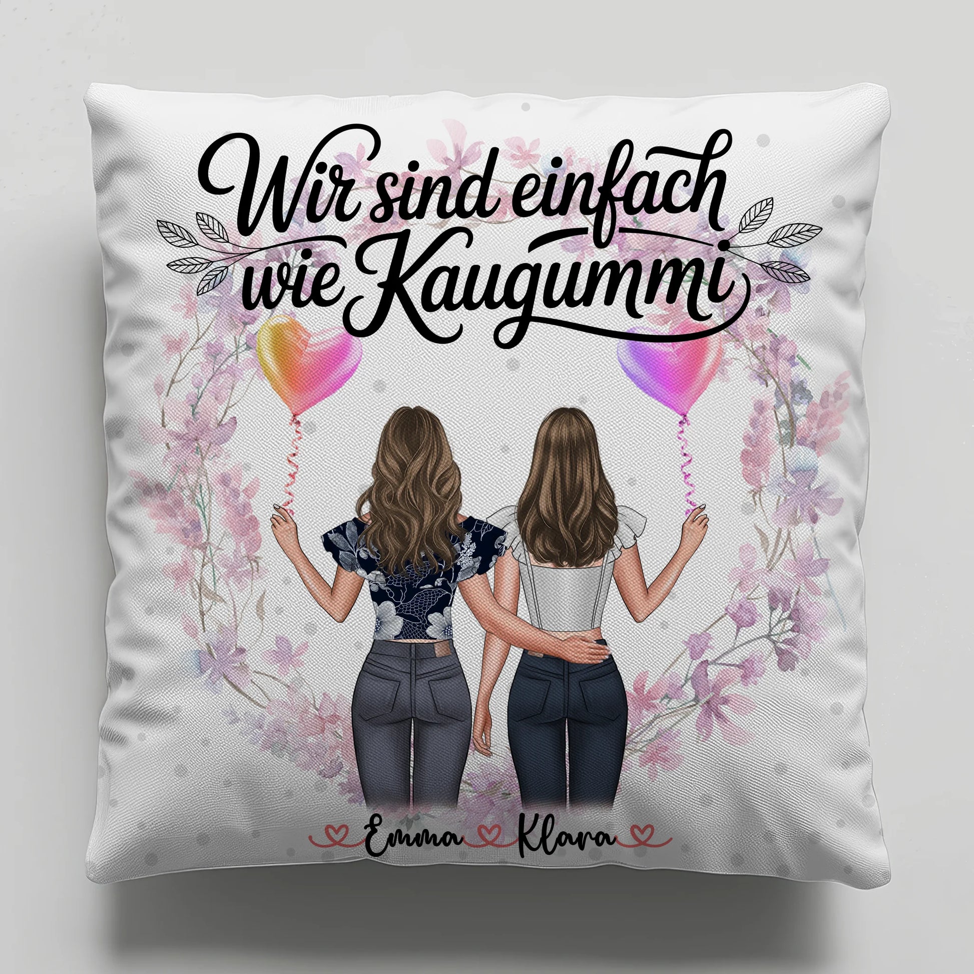 Kissen Mit Namen Beste Freundin Wir sind wie Kaugummi 2 Frauen & Spruch