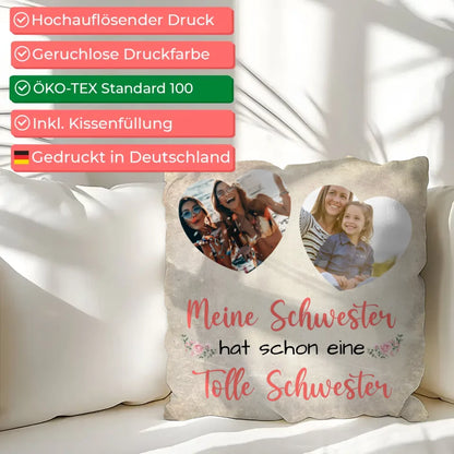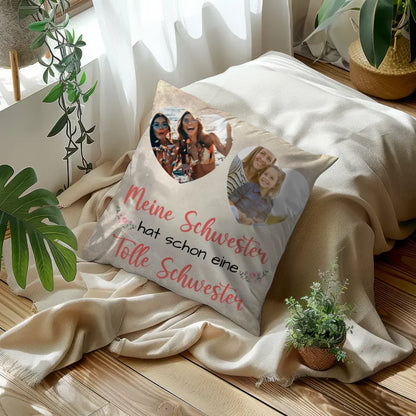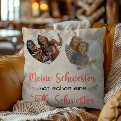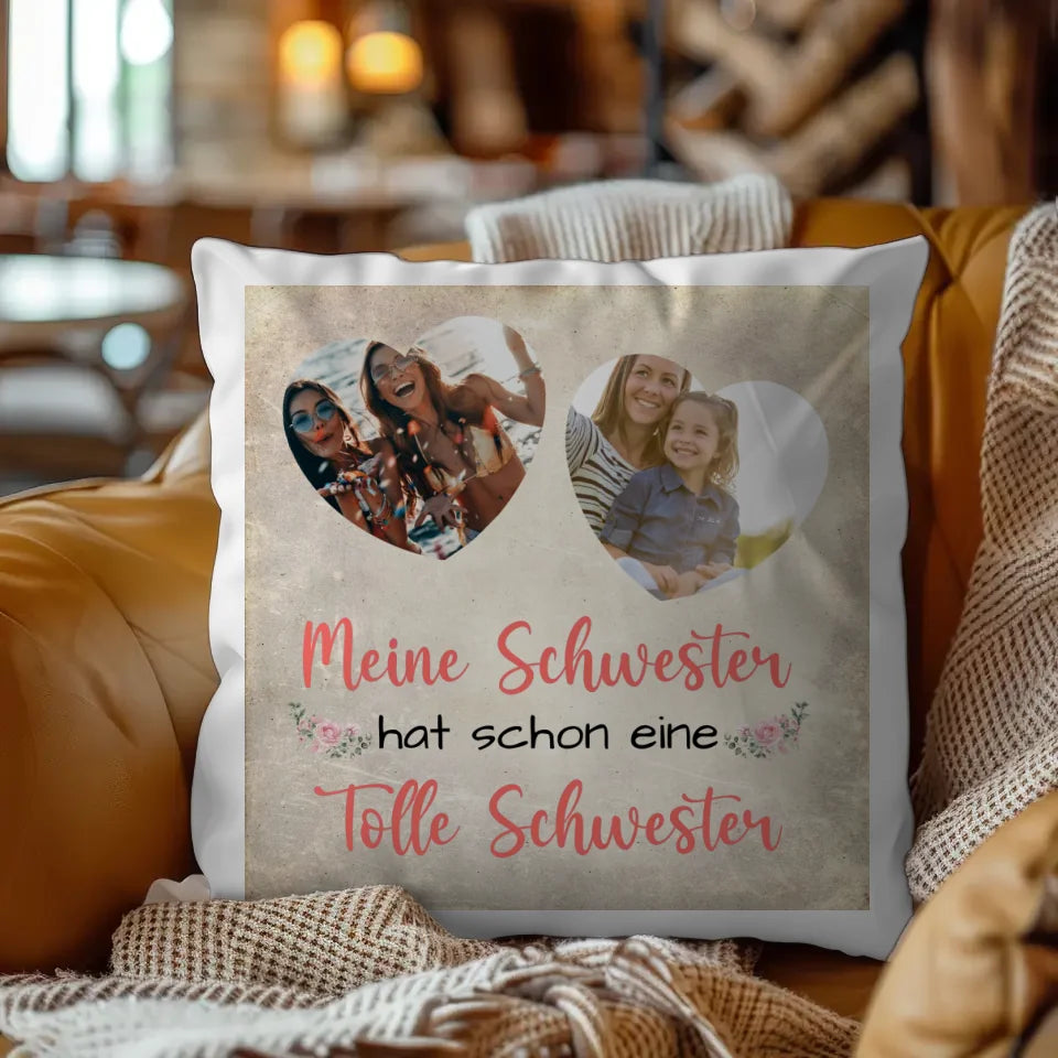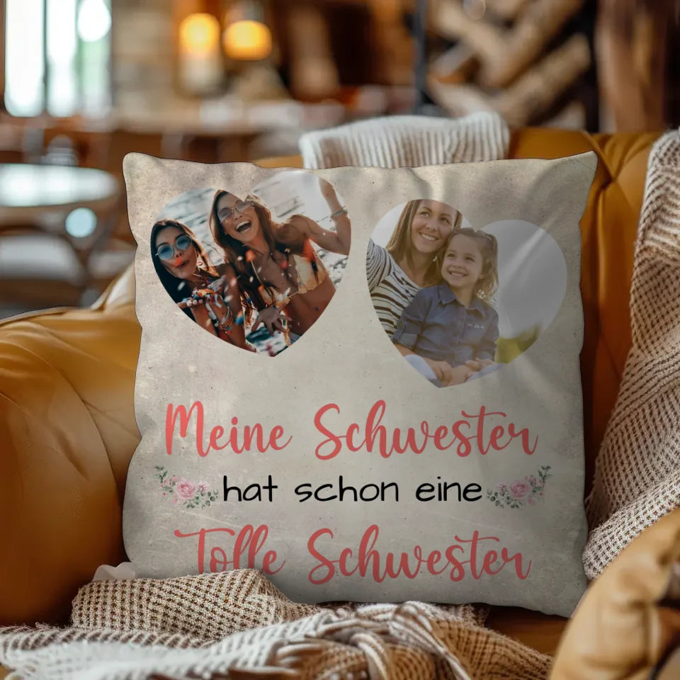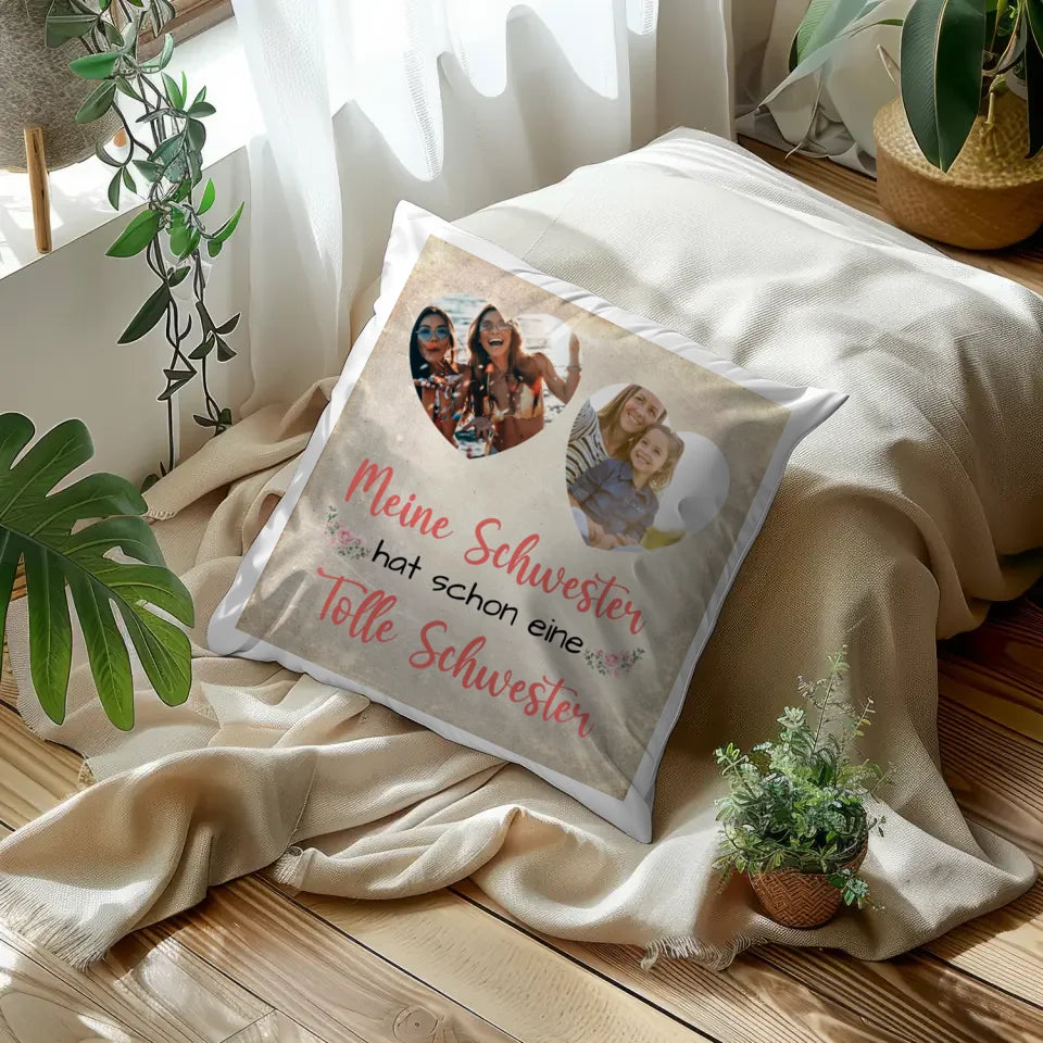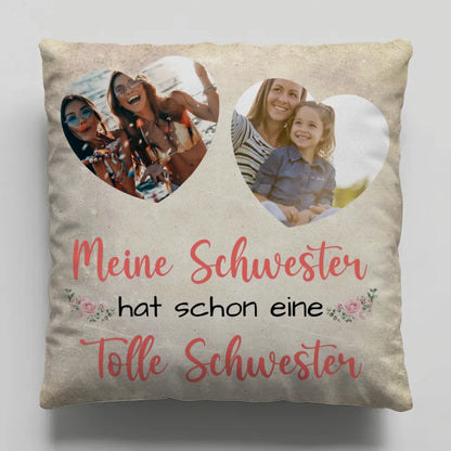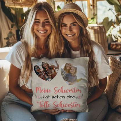 Unser Kissen Personalisiert Schwester Zum Geburtstag mit 2 Herz Fotos