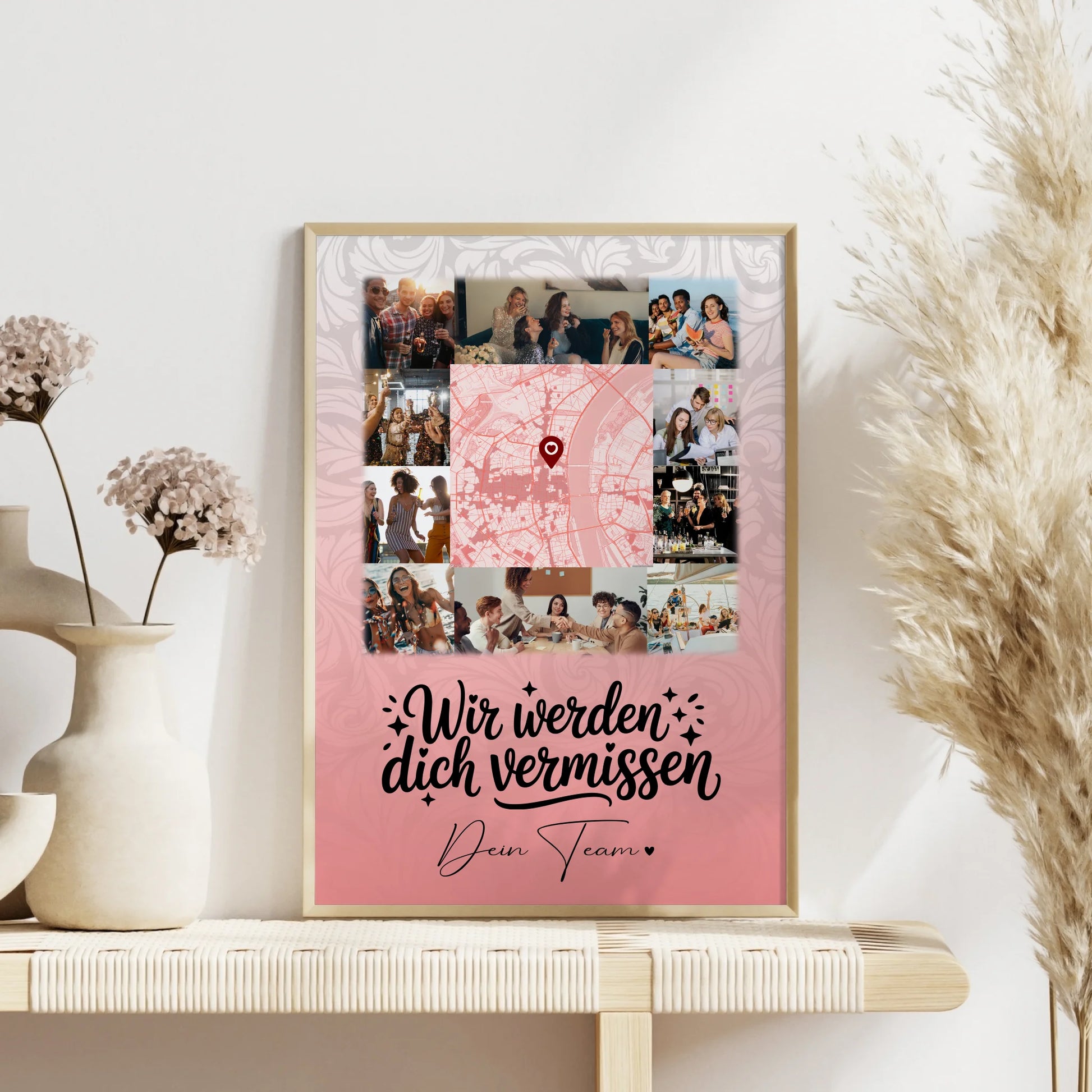 Gestalte ein Geschenk, das so einzigartig ist wie eure Zusammenarbeit. Du kannst dieses Abschiedsposter ganz einfach personalisieren: