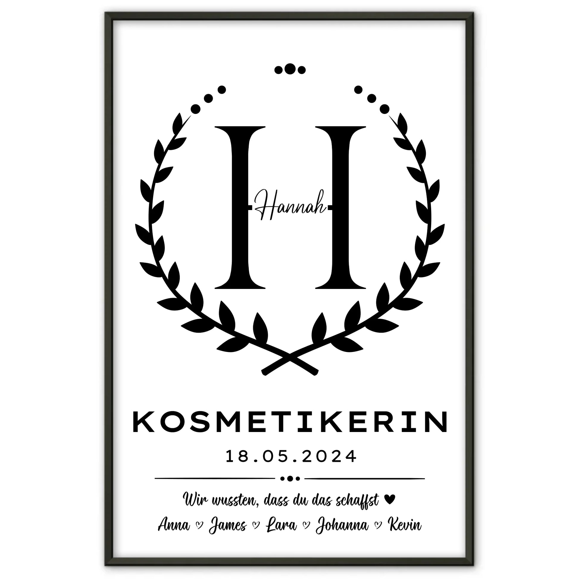Du suchst ein einzigartiges und persönliches Ausbildungsabschluss Geschenk für eine Kosmetikerin? Unser Kosmetikerin Ausbildungsabschluss Geschenk Poster ist genau das Richtige für dich! Dieses individuell gestaltbare Poster kannst du mit dem Initial Buchstaben, dem Datum des Abschlusses und einem Wunschtext personalisieren. So wird dein Geschenk zum Abschluss Ausbildung zu einem ganz besonderen Andenken, das lange in Erinnerung bleibt.