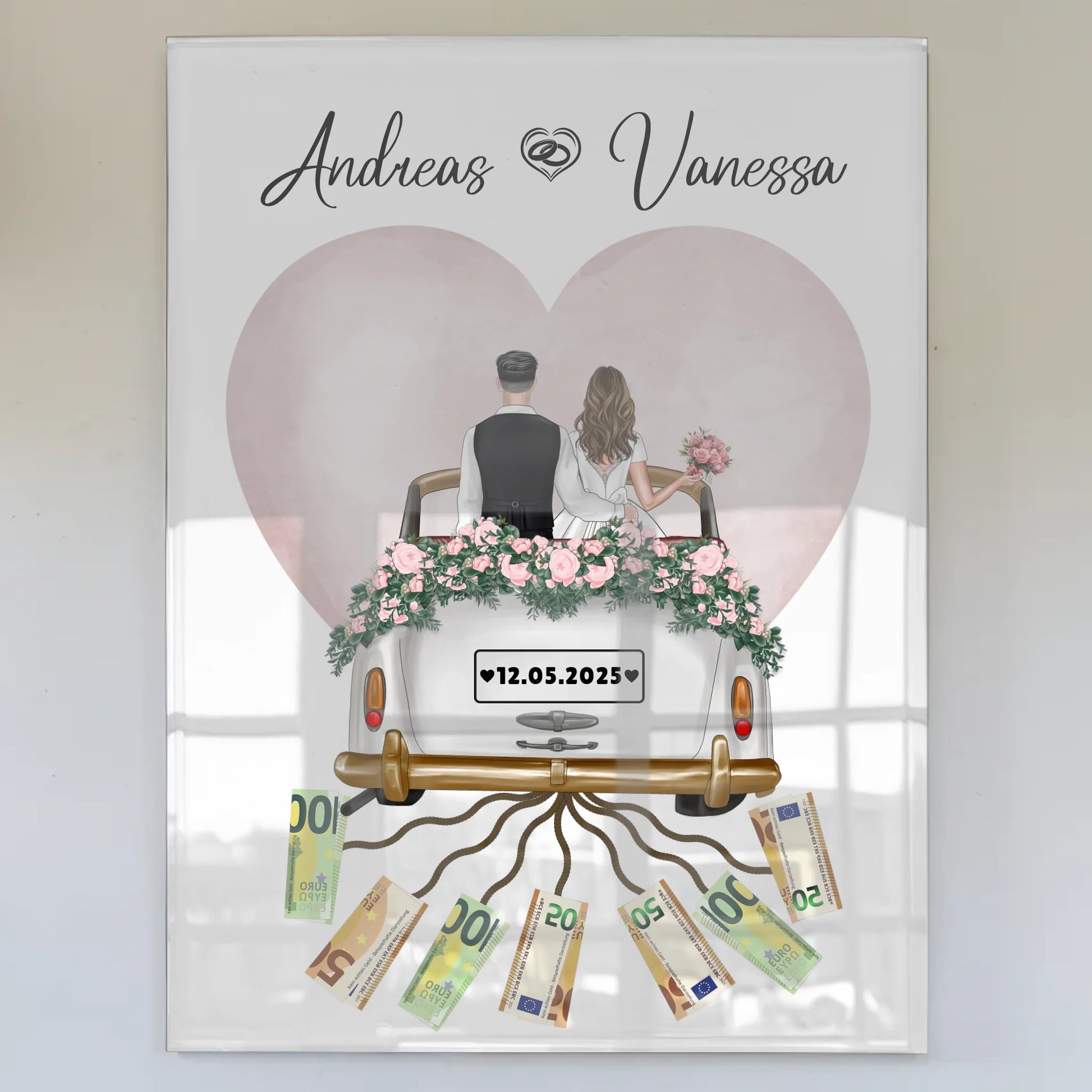 Kreatives Geldgeschenk Acrylglas Bild Hochzeit Herz