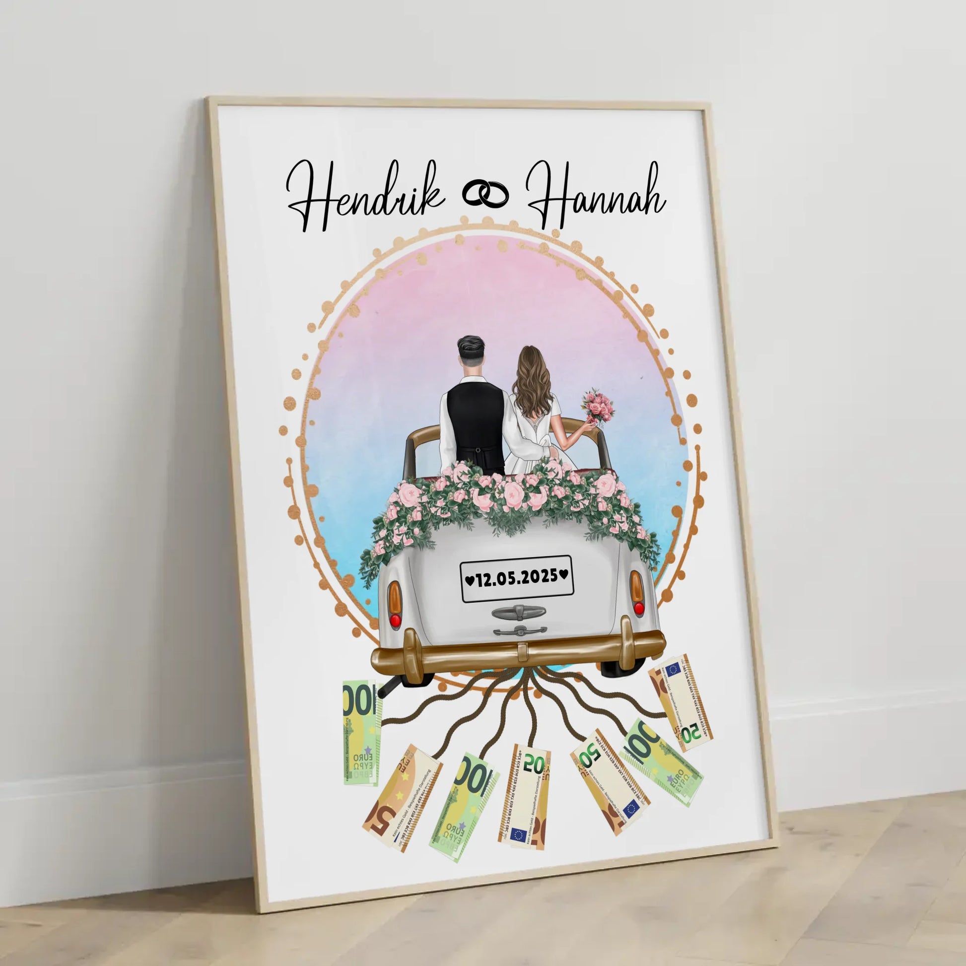Kreatives Geldgeschenk Poster für Hochzeit mit Namen und Datum