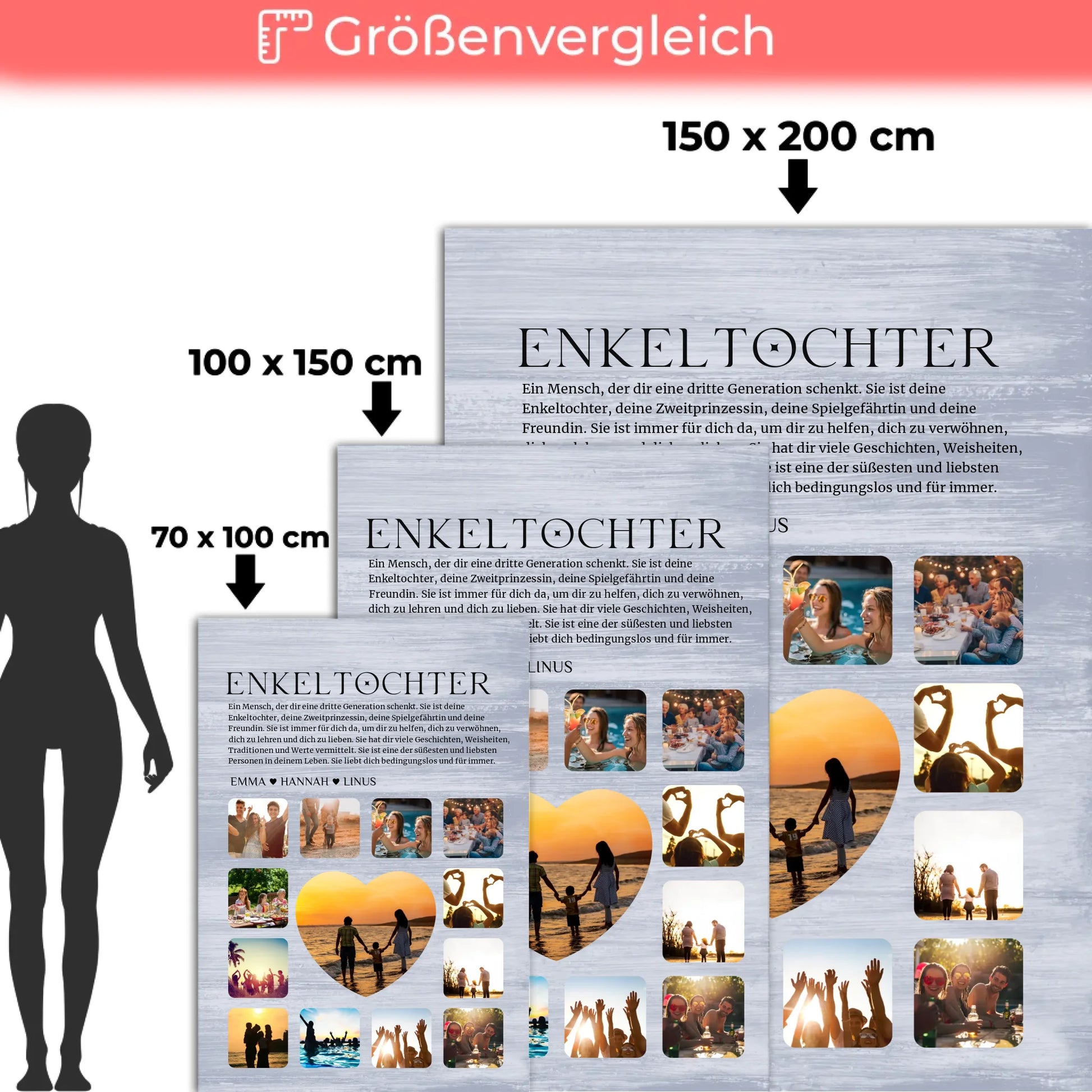 Unsere Decke Personalisiert ist mehr als nur eine Decke – sie erzählt eure Geschichte in Form einer liebevoll gestalteten Fotocollage Definition. Verschenke jetzt diese Personalisierte Kuscheldecke als besonderes Geschenk und bereite deiner Enkeltochter eine große Freude!