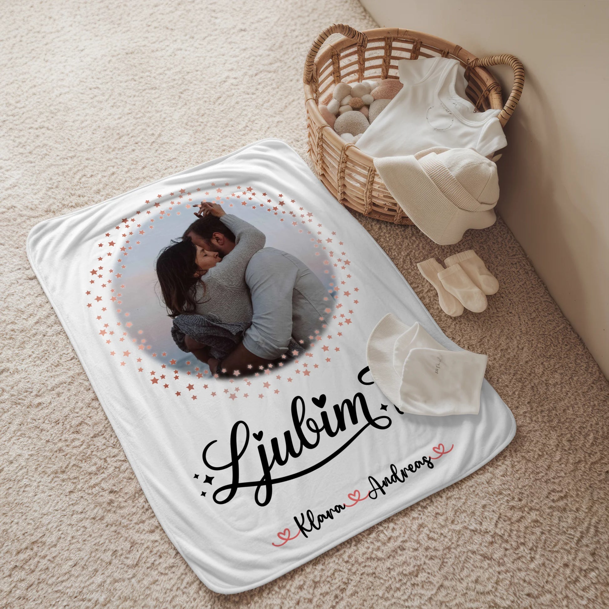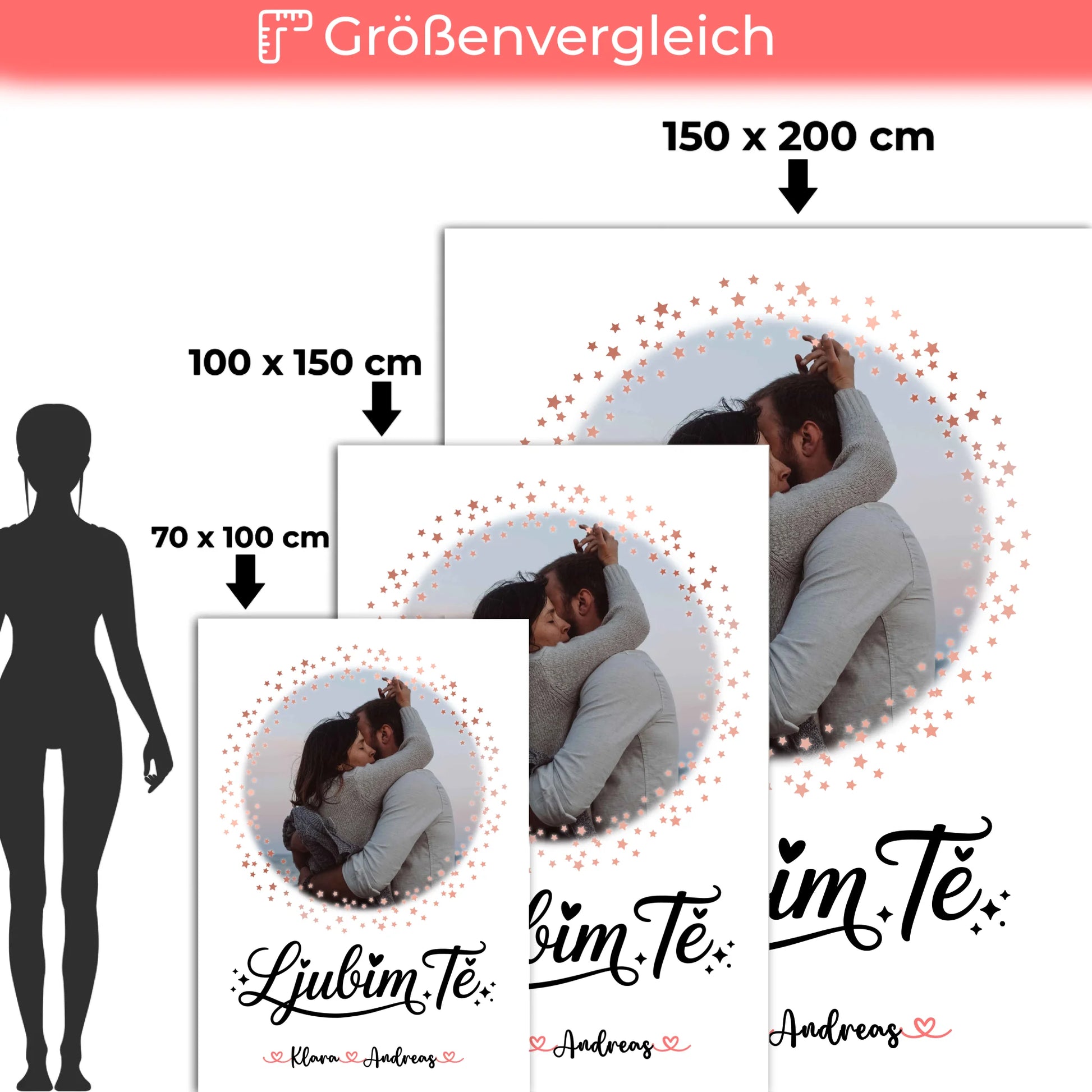 Kuscheldecke Mit Namen Und Motiv für Paare mit Foto Ljubim te, 1 Foto & Wunschtext