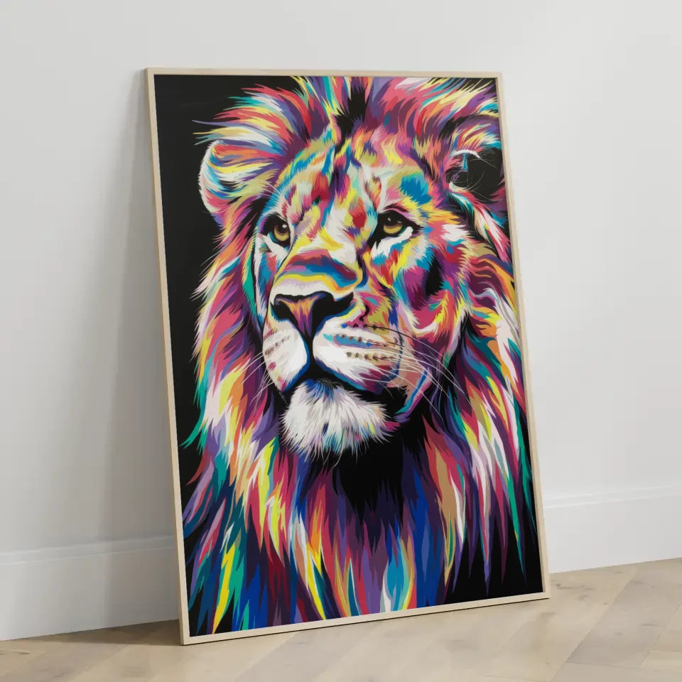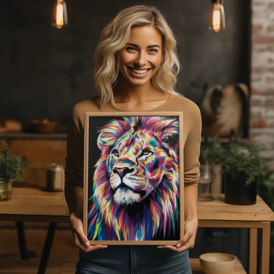 Bestellen Sie Ihr Lebendiger Löwen Poster noch heute und verwandeln Sie Ihre Wände in eine farbenfrohe Galerie, die sowohl Ästhetik als auch Charakter zeigt. Lassen Sie sich von der Magie und Schönheit dieses Löwen-Designs verzaubern!