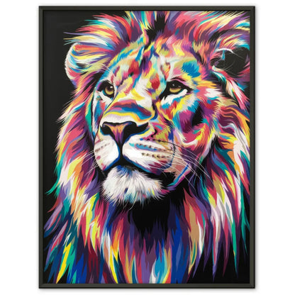 Entdecken Sie unser eindrucksvolles Poster, das einen lebendigen Löwen in einer farbenfrohen Darstellung zeigt. Dieses einzigartige Kunstwerk zeigt die Mähne und die Gesichtszüge des Löwen in atemberaubenden Details, übersät mit zahlreichen Farben wie Blau, Rot, Gelb und Lila. Der überwiegend schwarze Hintergrund des Posters betont und hebt die leuchtenden Farben des Löwen gekonnt hervor. Mit seinen nach oben gerichteten Augen strahlt dieses Poster eine majestätische und nachdenkliche Ausstrahlung aus, die in jedem Raum zum Blickfang wird.
