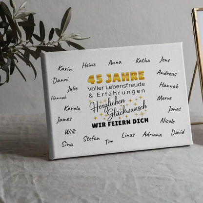 Unsere Leinwand als Geschenkidee 45 Geburtstag Erfahrung mit Unterschriften