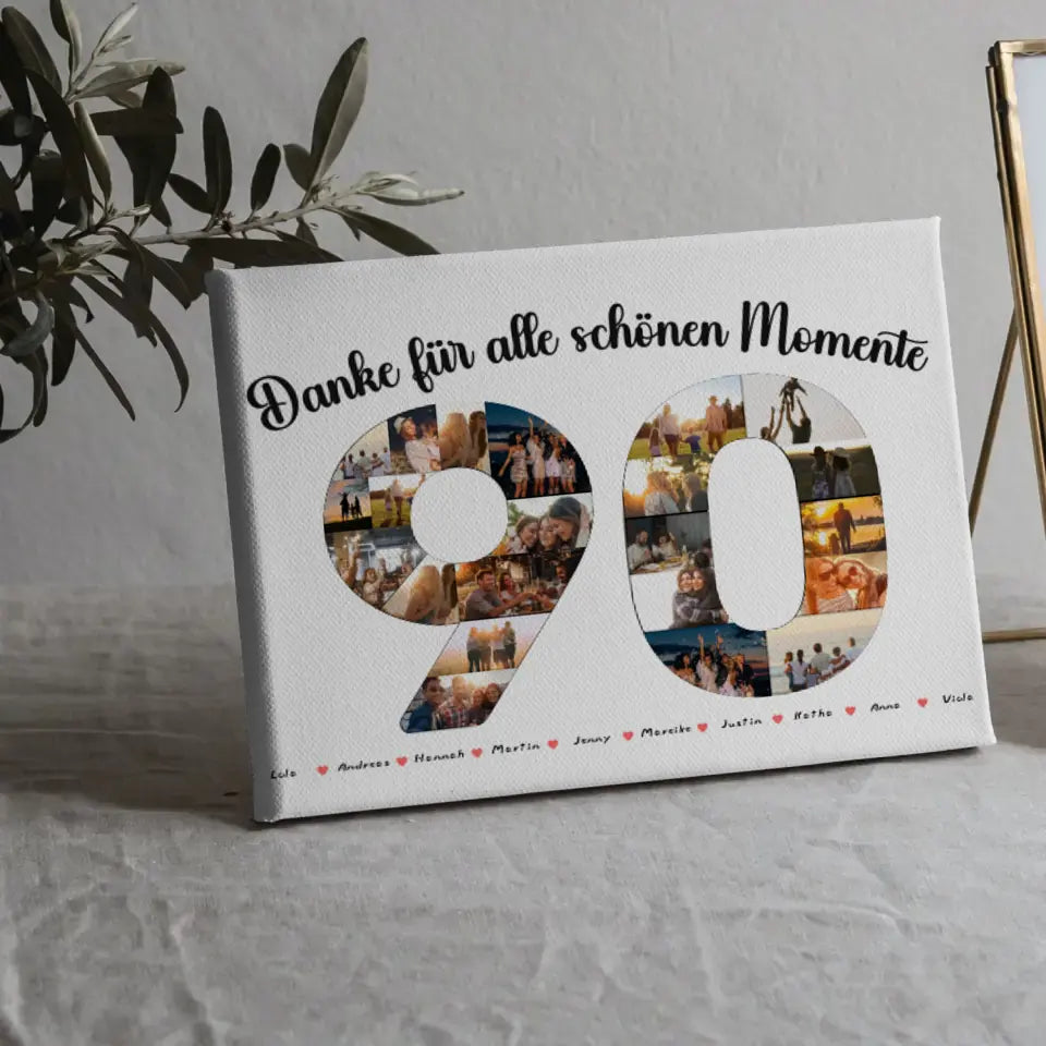 Unsere Leinwand als Geschenkidee 90 Geburtstag Danke für Momente mit Fotos