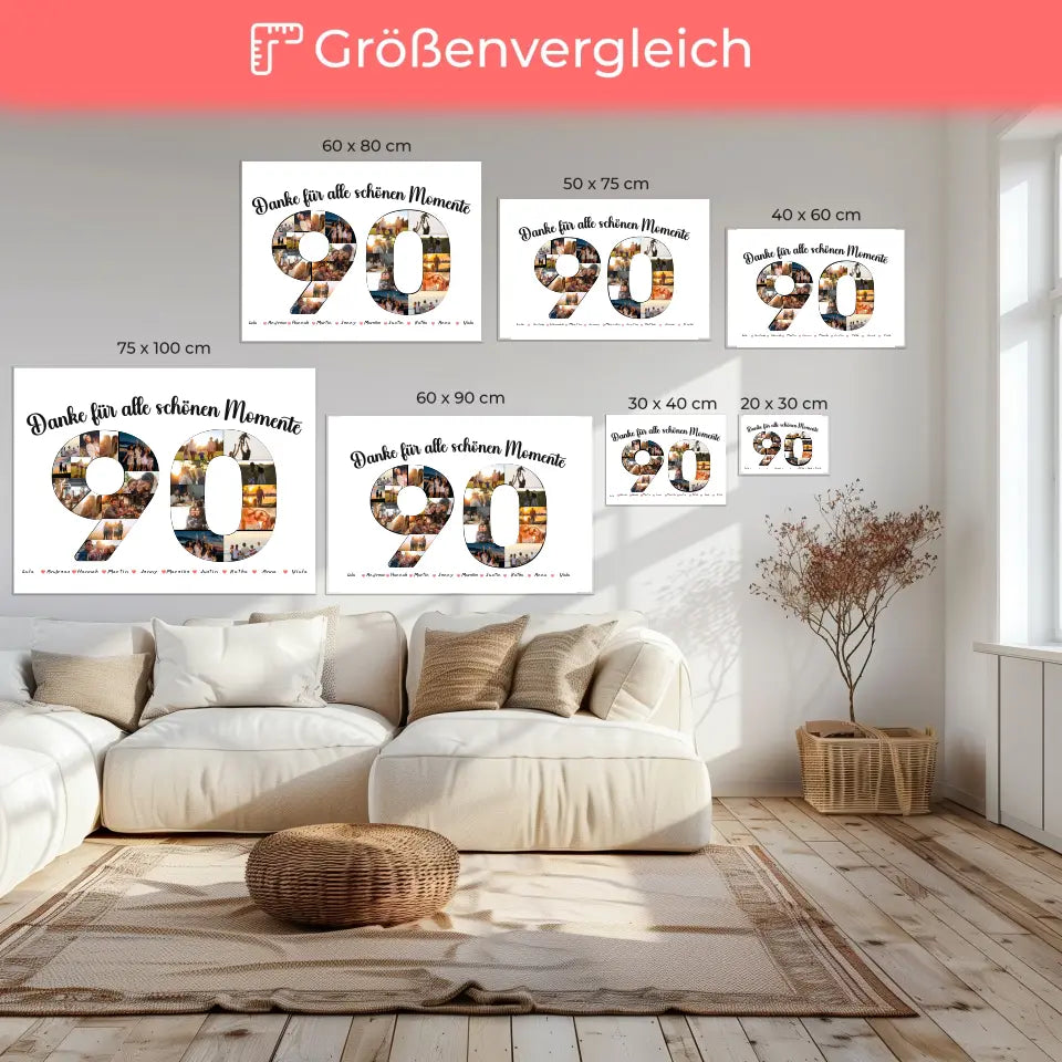 Leinwand als Geschenkidee 90 Geburtstag Danke für Momente mit Fotos