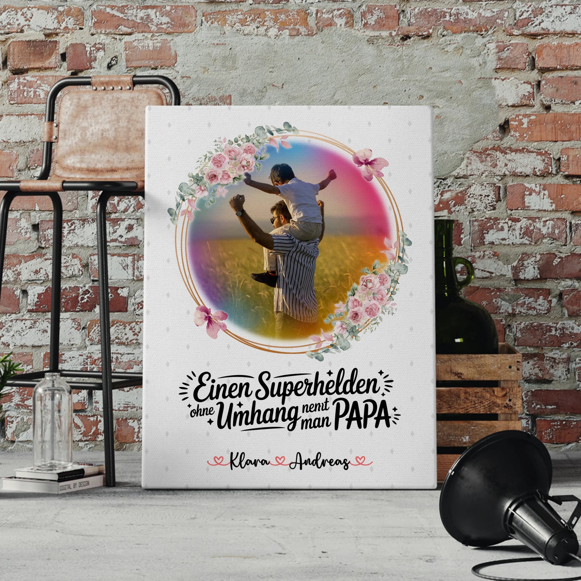 Überrasche deinen Papa zum Vatertag mit einer persönlichen Leinwand, die Herz und Erinnerungen verbindet. Diese personalisierte Leinwand vereint ein emotionales Motiv, deinen Wunschtext und ein eingefügtes Foto zu einem einzigartigen Geschenk, das im Wohnzimmer oder Büro zum Blickfang wird.