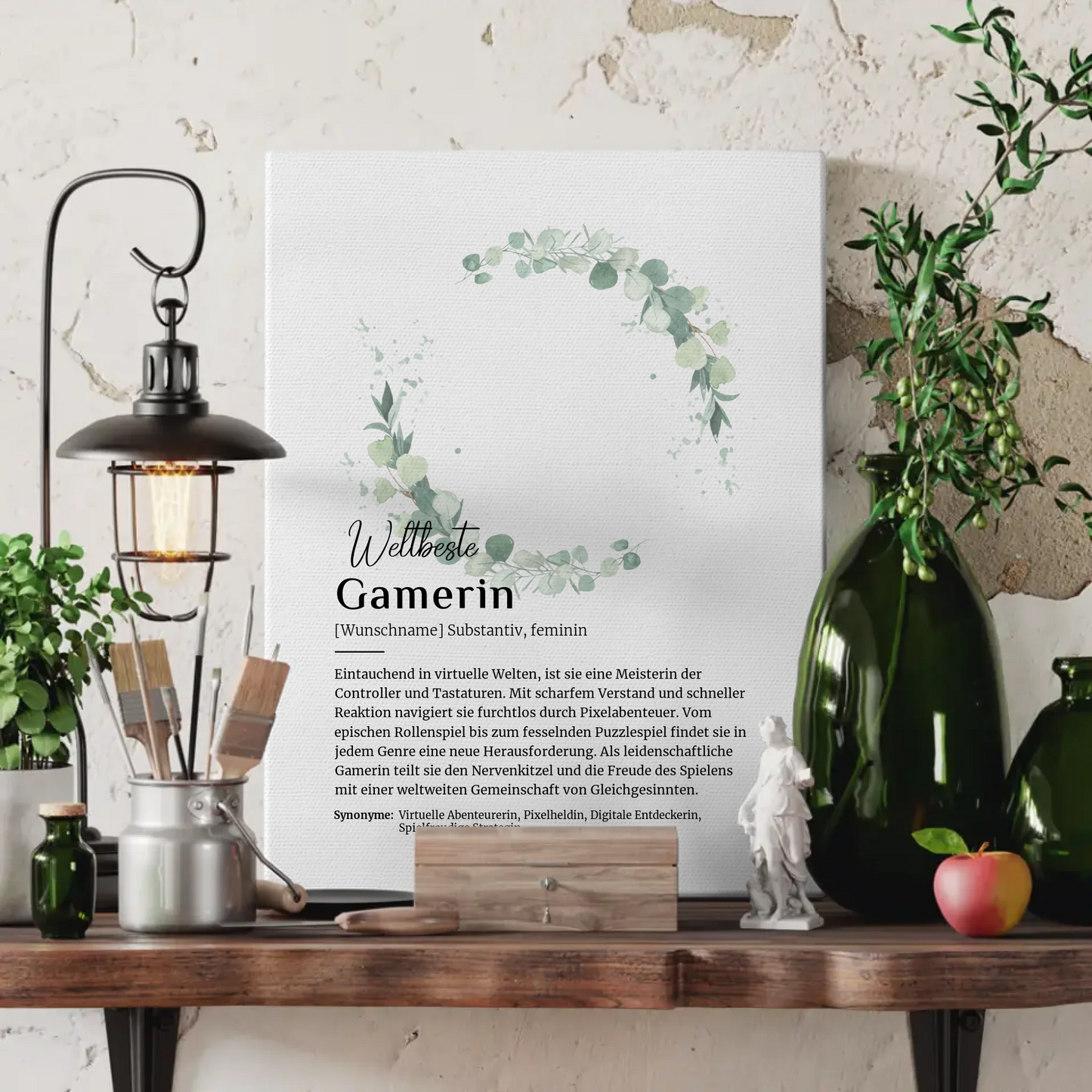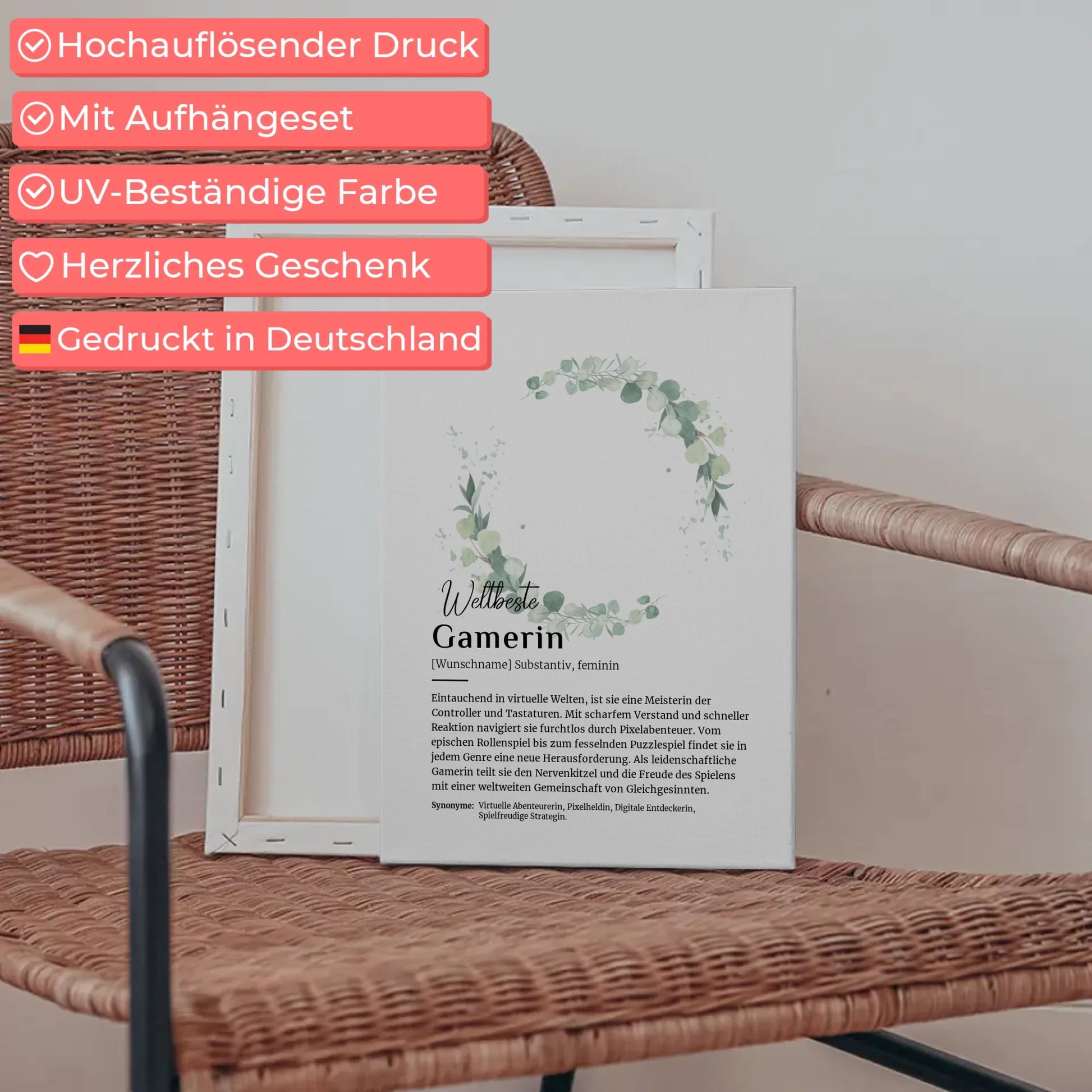 Leinwand Definition Gamerin Gaming mit Namen Geschenkidee