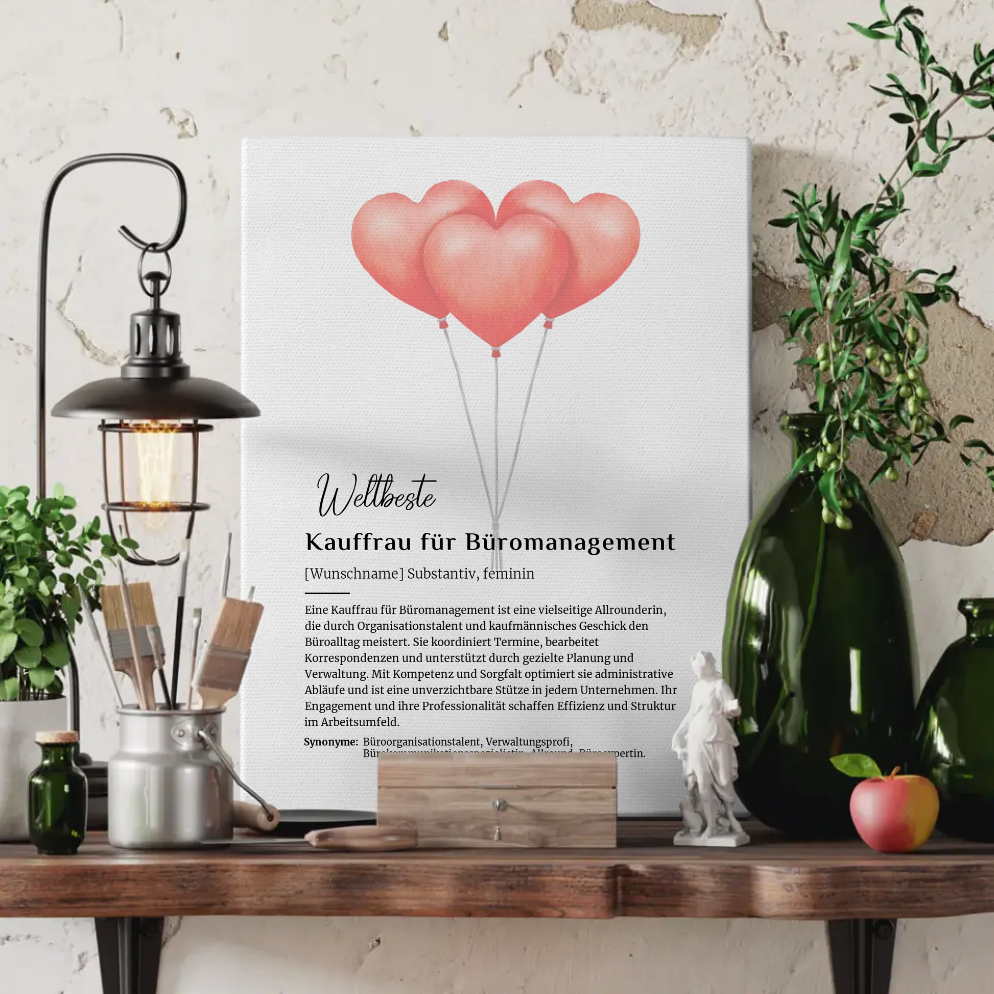 Egal ob für eine Kollegin, die in den Ruhestand geht oder eine Freundin, die ihre neue Position als Kauffrau für Büromanagement antritt – diese einzigartigen Leinwände sind perfektioniert, um besondere Momente festzuhalten. Das personalisierte Design macht jedes Stück zu einem einmaligen Kunstwerk und sorgt dafür, dass es viel Freude bereitet.