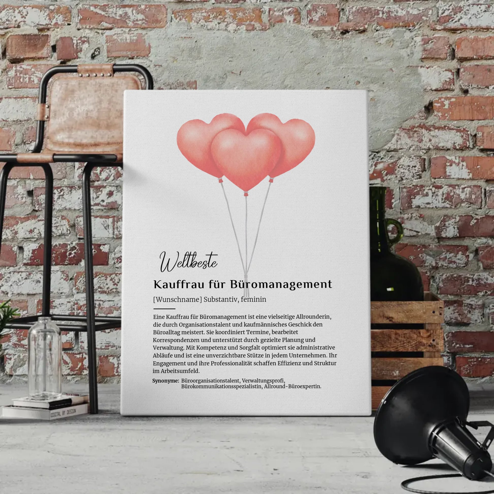 Die Leinwand Definition ist hochwertig verarbeitet und besticht durch brillante Farben, die jeden Raum aufwerten. Zeige deine Anerkennung und kombiniere Stil mit Persönlichkeit – perfekt geeignet für jeden Anlass! Mit der Kauffrau für Büromanagement als Thema wird dieses Geschenk all jene ansprechen, die sich in diesem Berufsfeld bewegen.