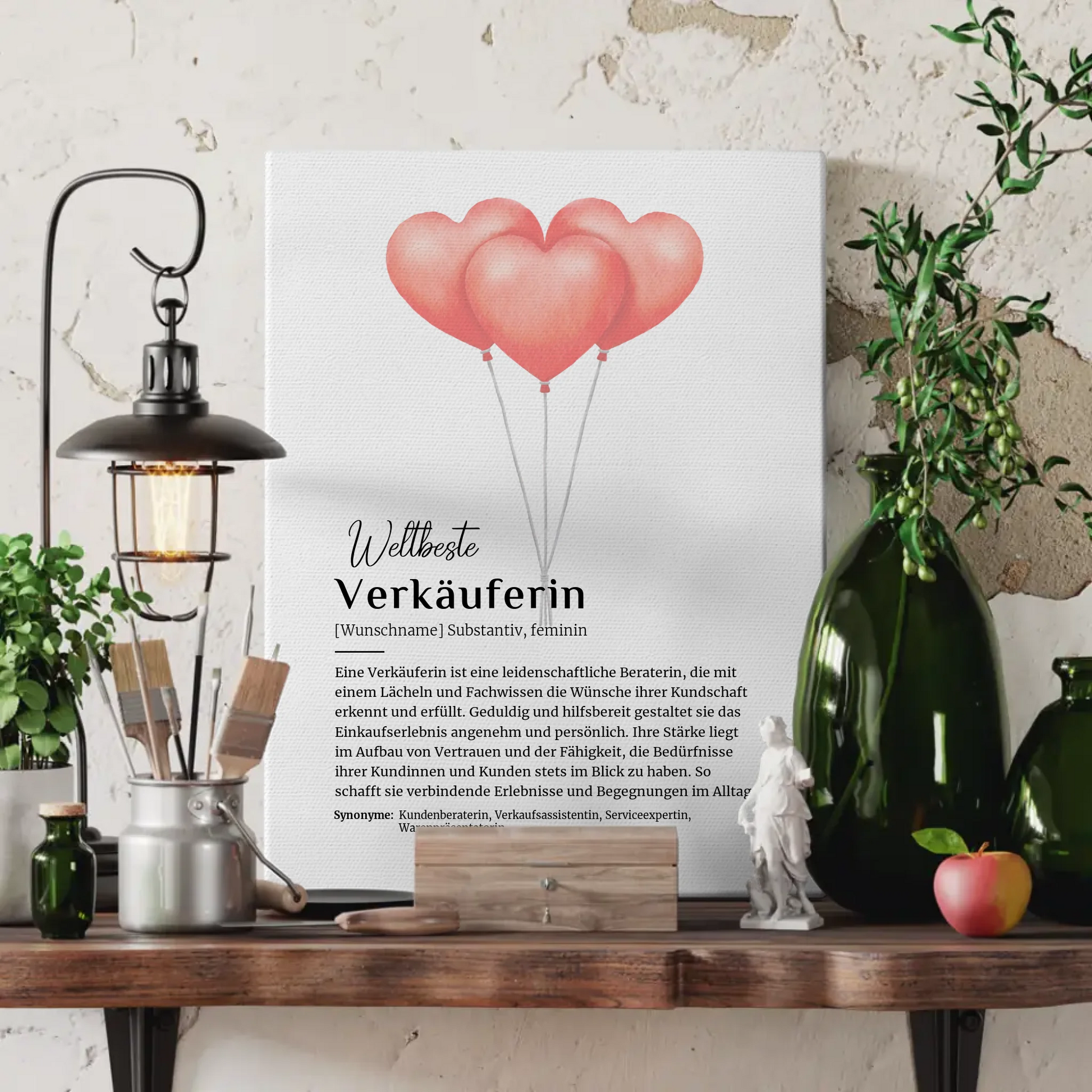 Leinwand Definition Verkäuferin mit Namen Geschenkidee personalisiert