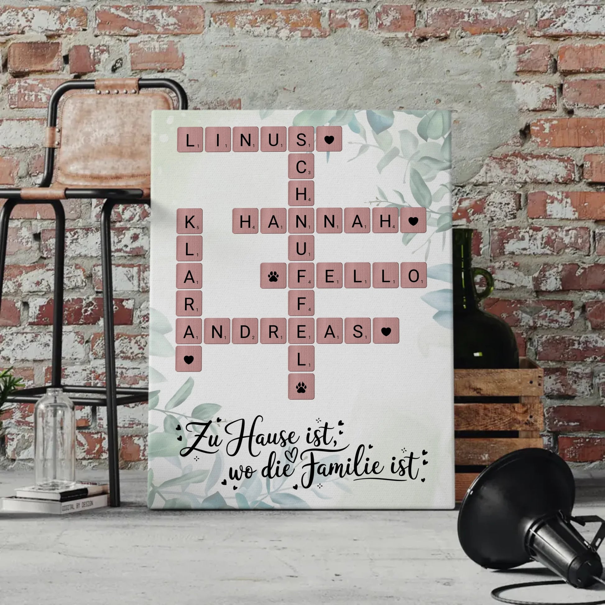 Lass dich von der Vielseitigkeit der Kreuzworträtsel mit Namen inspirieren! Unsere personalisierten Leinwände sind perfekt für Familien mit Kindern und sogar für Haustierbesitzer – gestalte deine eigene FamilienLeinwand mit Hund, um auch den vierbeinigen Freund zu integrieren!