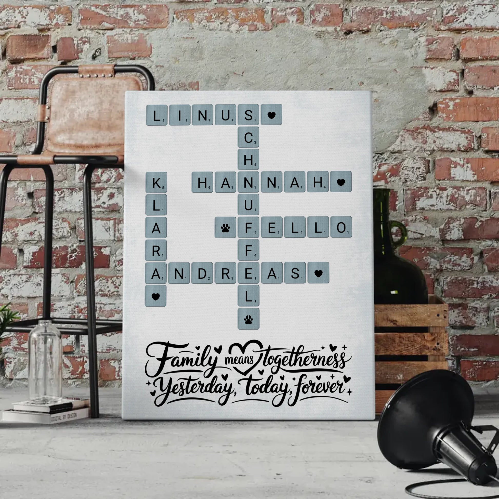 Leinwand Familie Spruch Family means Kreuzworträtsel Namen