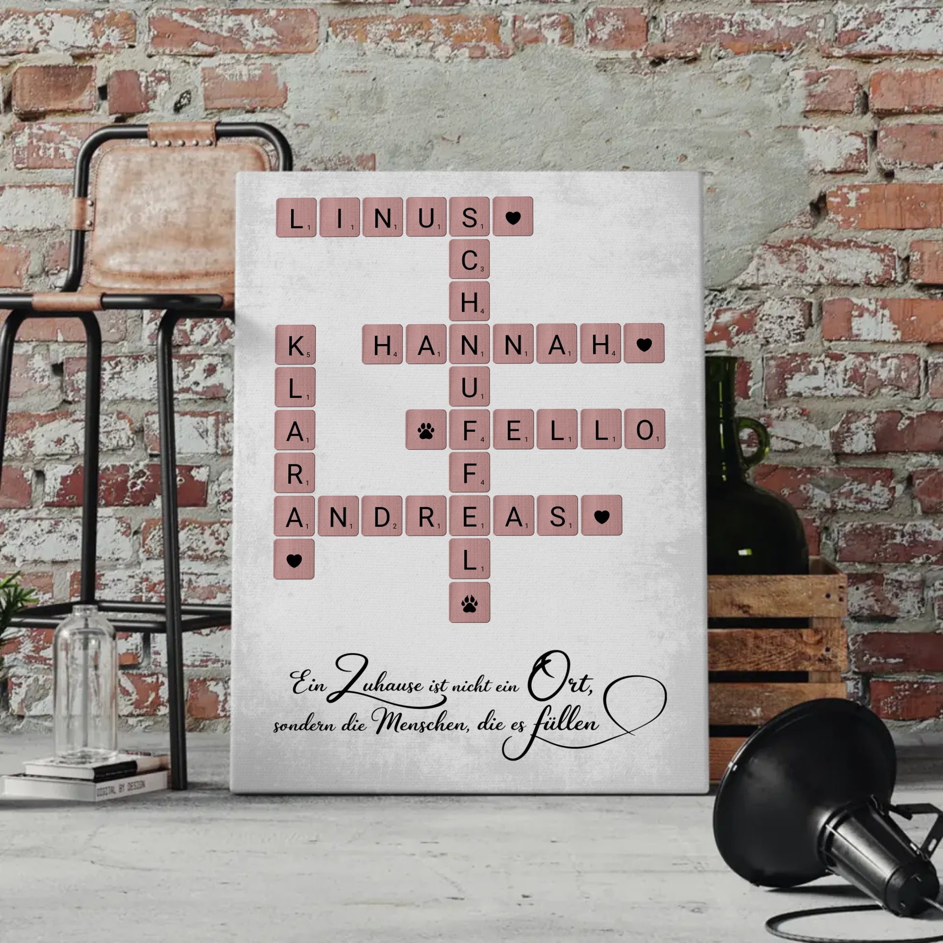 Leinwand Familienbild Personalisiert Zuhause Scrabble Style Namen