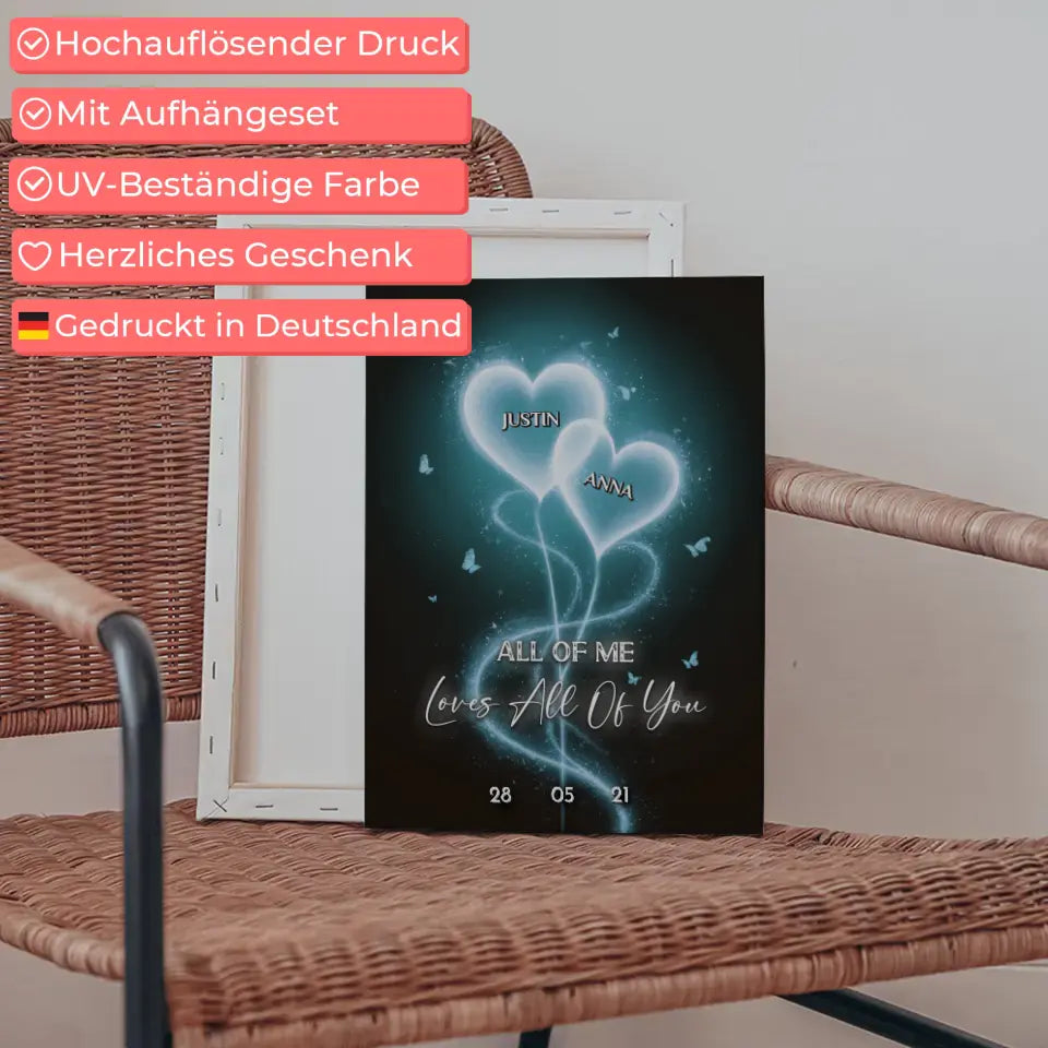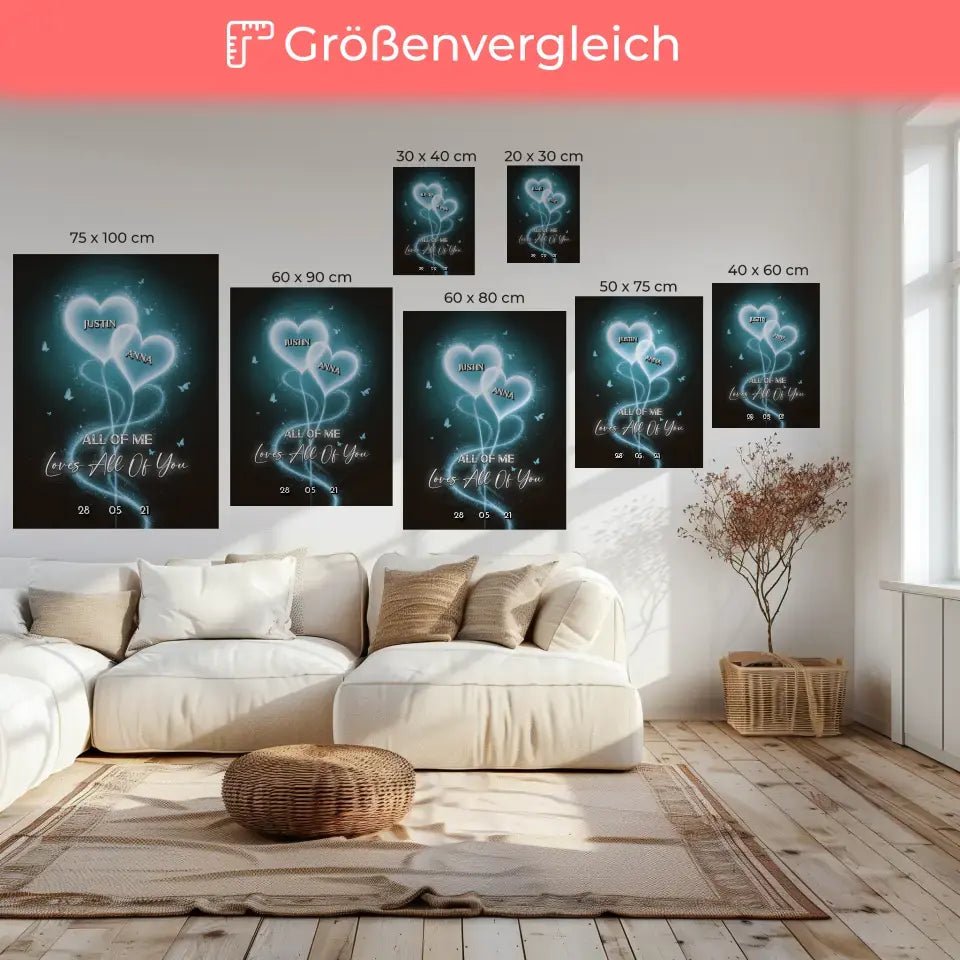 Unsere Leinwand für Freundin Blaue Licht Herzen Leinwand Liebe personalisiert
