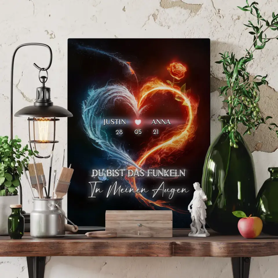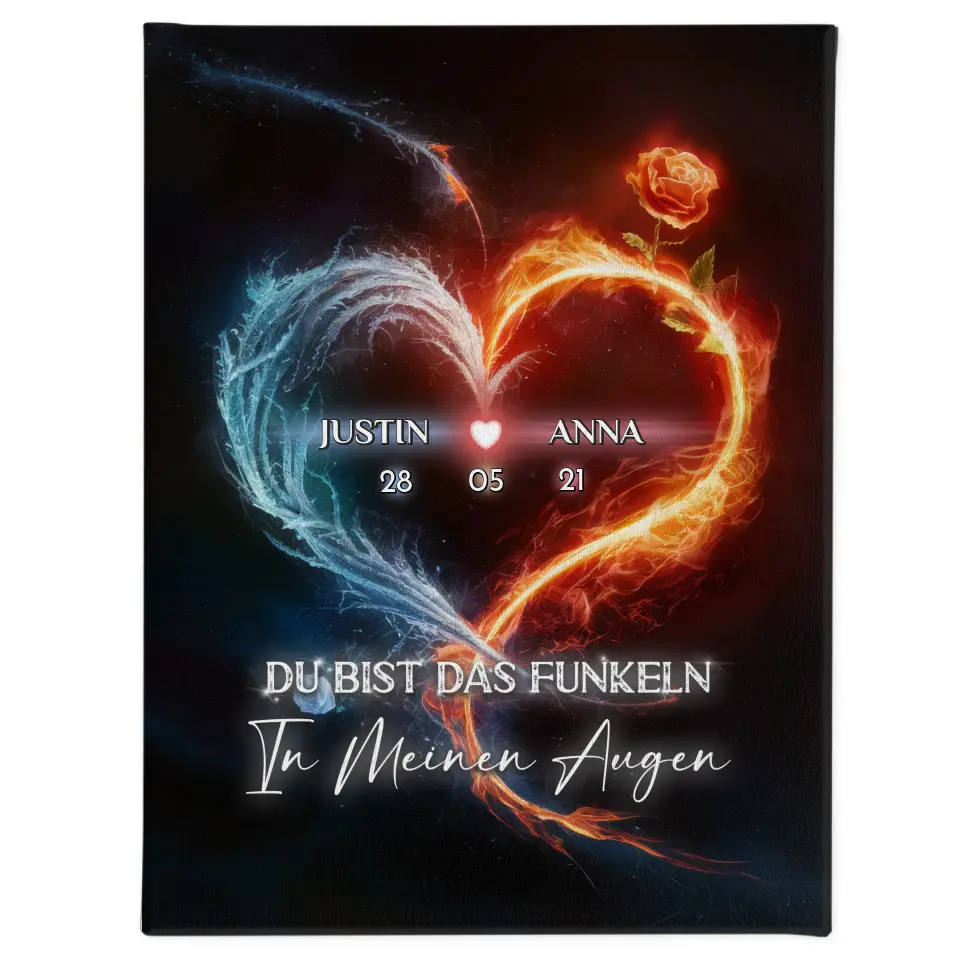Leinwand für Freundin Feuer & Wasser Herz Leinwand Liebe personalisiert