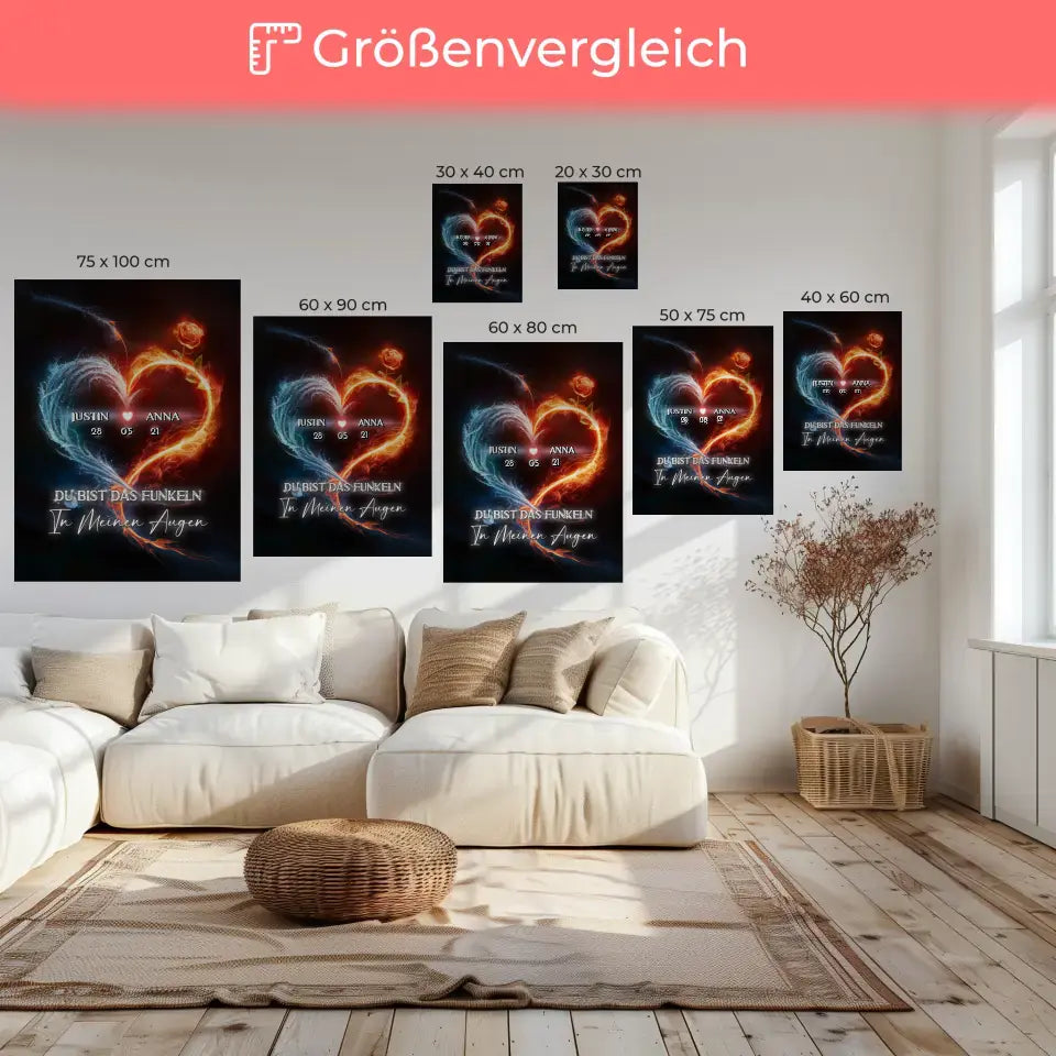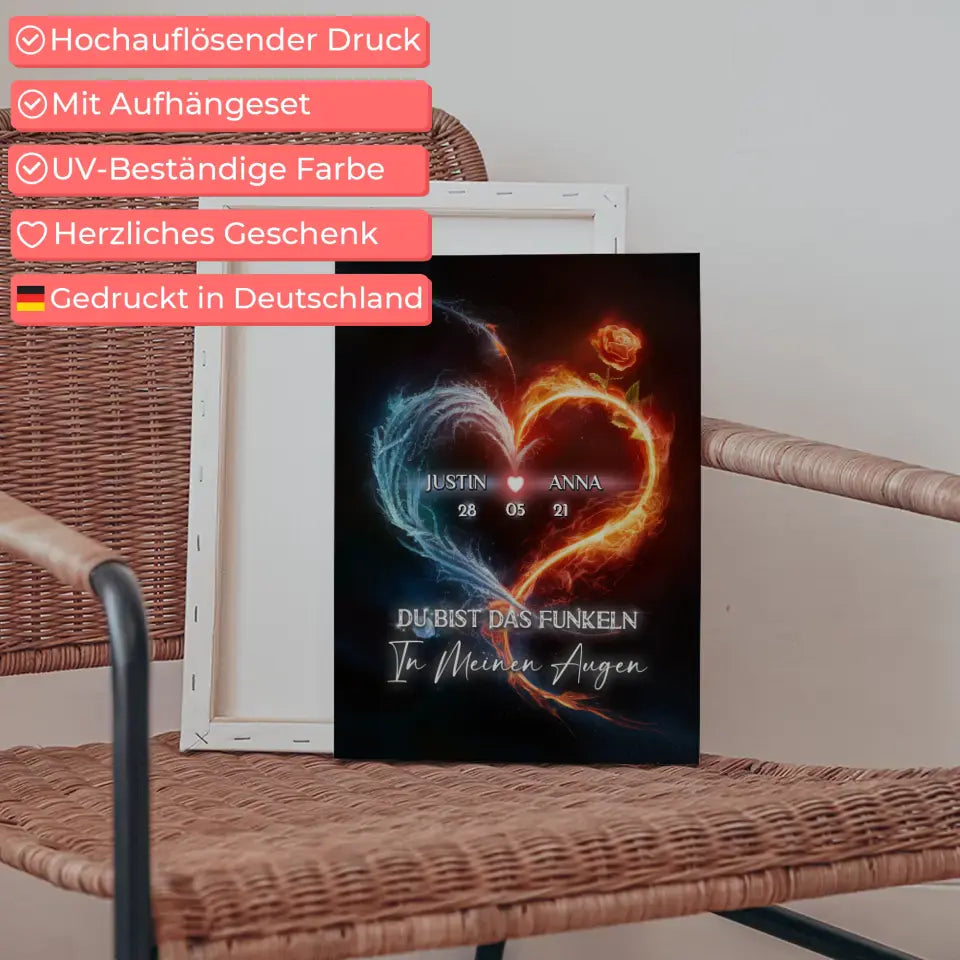 Unsere Leinwand für Freundin Feuer & Wasser Herz Leinwand Liebe personalisiert