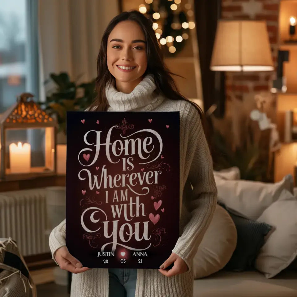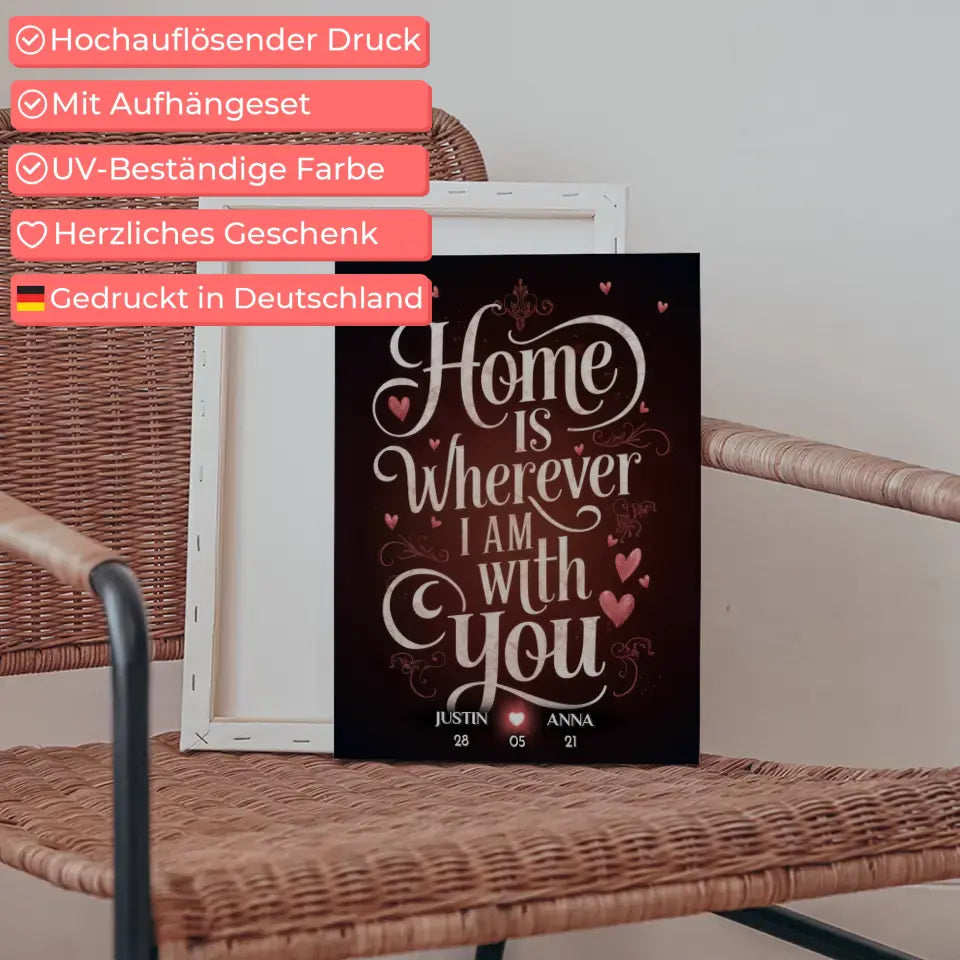Unsere Leinwand für Freundin Home Is Wherever I Am With You personalisiert