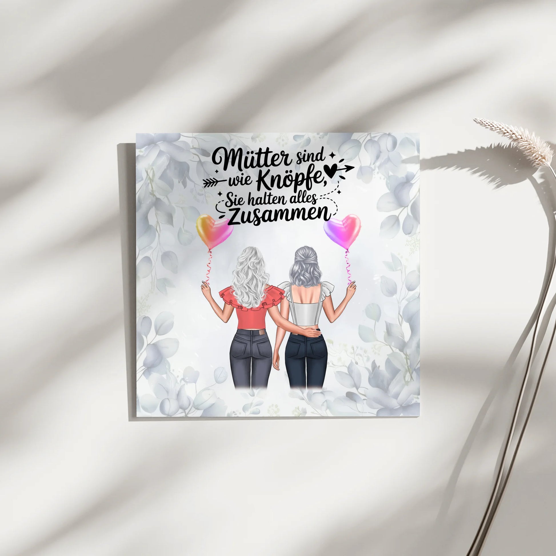 Leinwand Für Mama personalisiert mit 2 Clipart Frauen, Namen, Hintergrundbild & Wunschtext