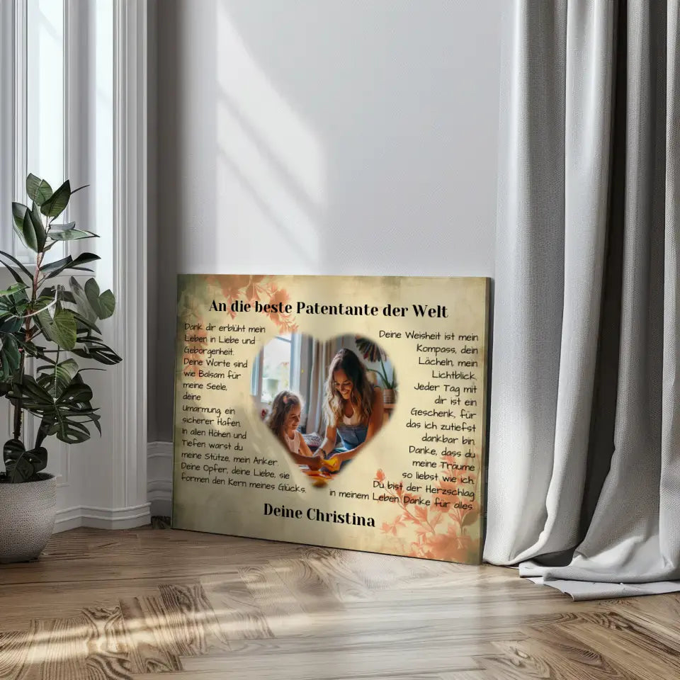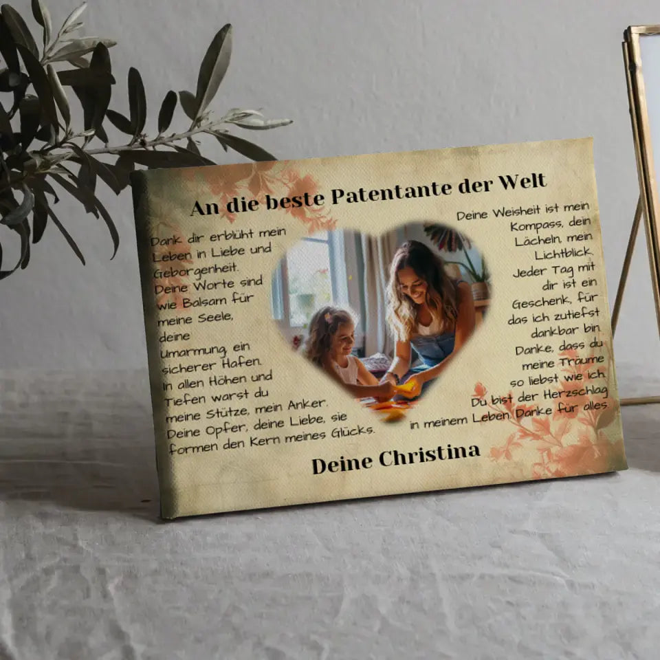 Leinwand für Patentante Danksagung Vintage mit Foto