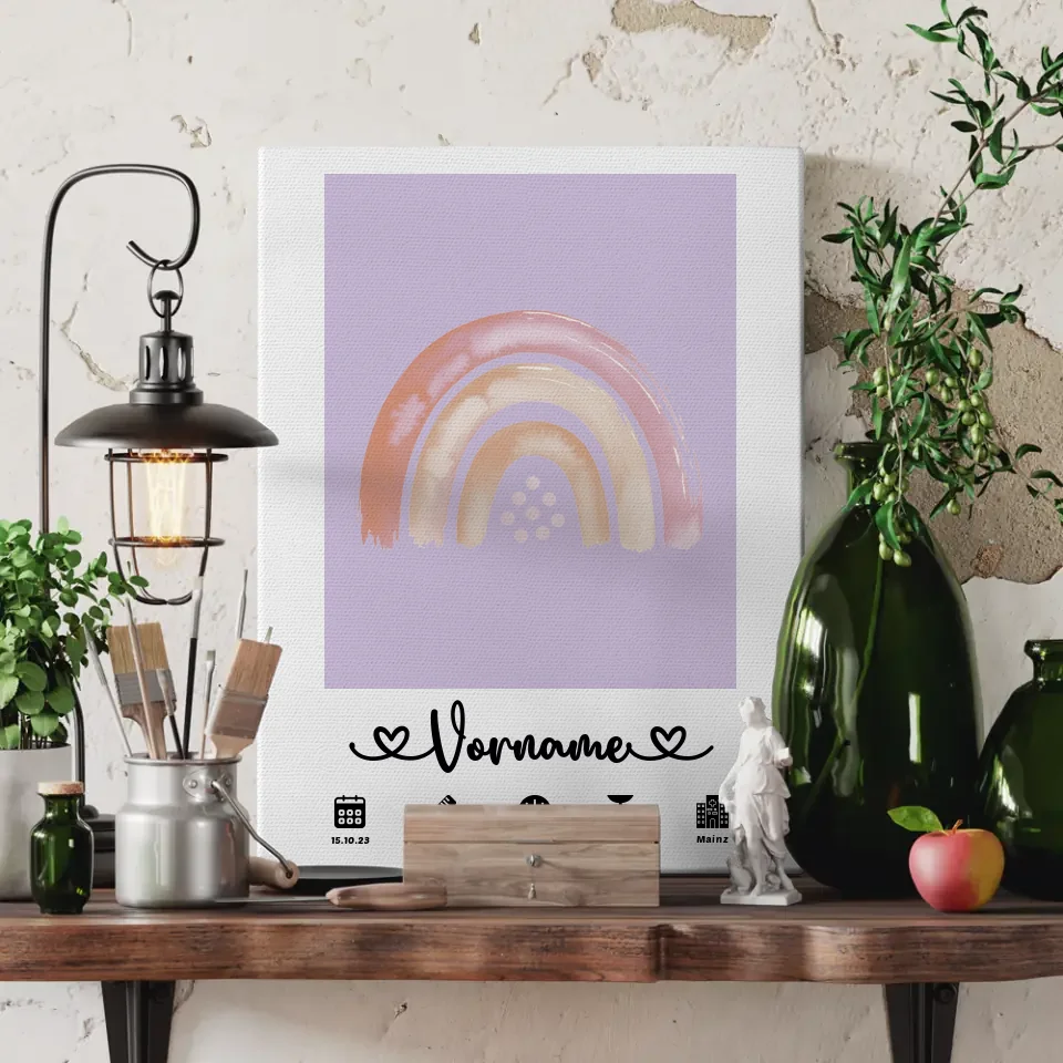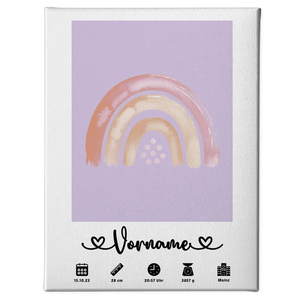 Leinwand Geburtsleinwand Personalisiert Regenbogen Beige Flieder