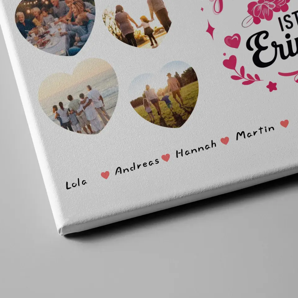 Du kannst bei diesem schönen Design 16 Fotos & 20 Namen ganz individuell personalisieren.