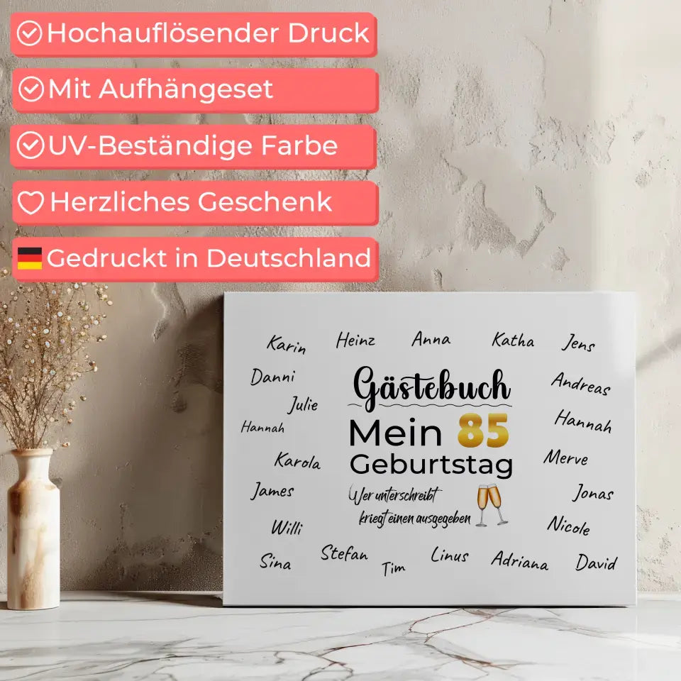 Leinwand Geschenk personalisiert GĂ€stebuch 85 Geburtstag mit Unterschriften
