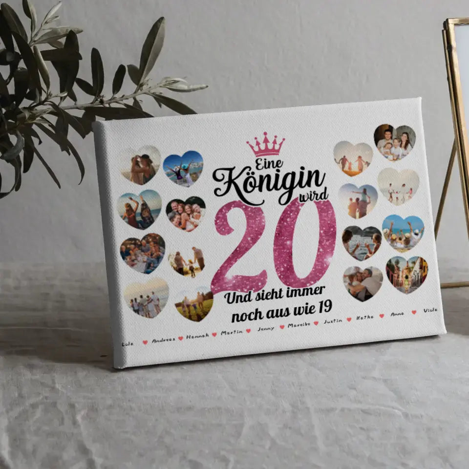 Leinwand Geschenk personalisiert Königin wird 20 Geburtstag mit Herz Fotos
