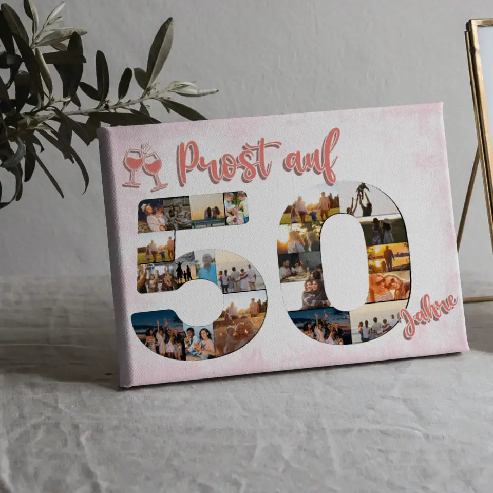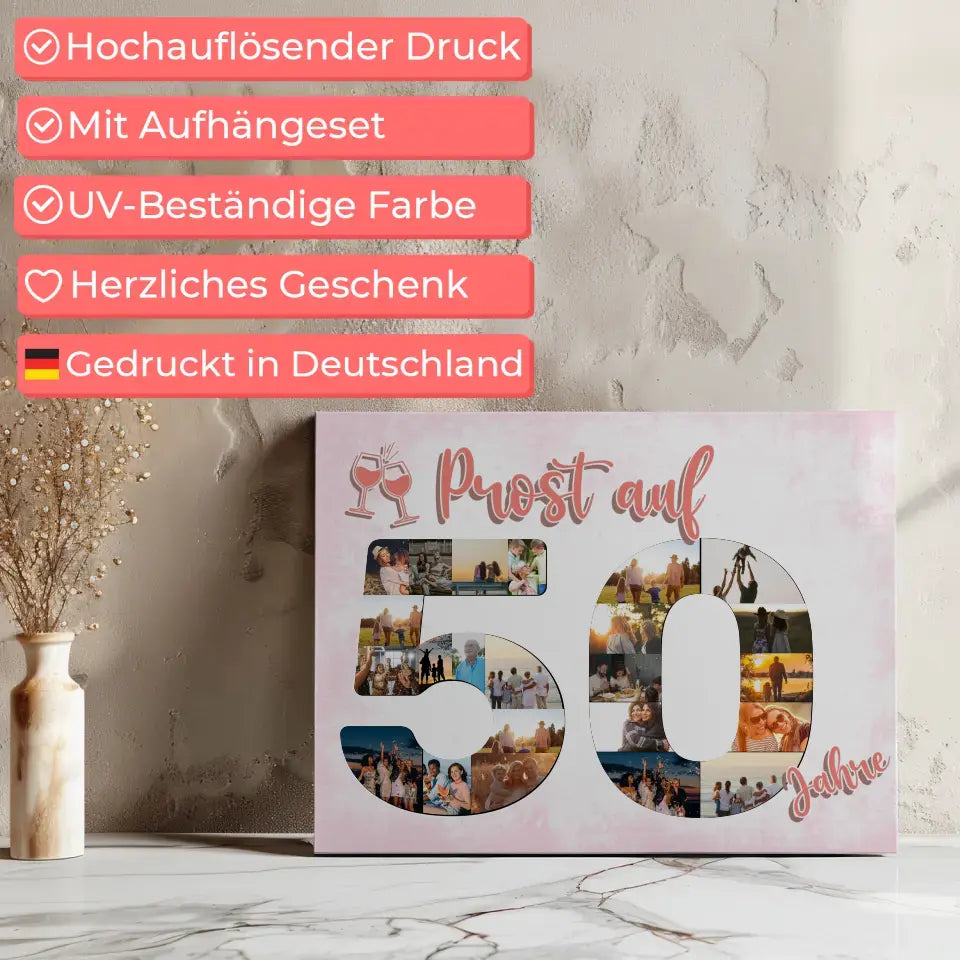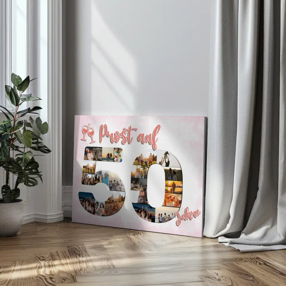 Leinwand Geschenk personalisiert Prost Auf 50 Geburtstag Für Frauen Sekt Rosa