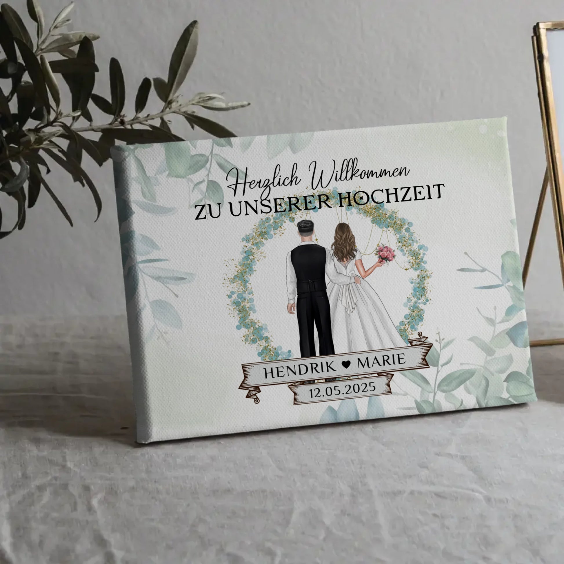 Leinwand Hochzeit Herzlich Willkommen Blütenkreis Geschenk